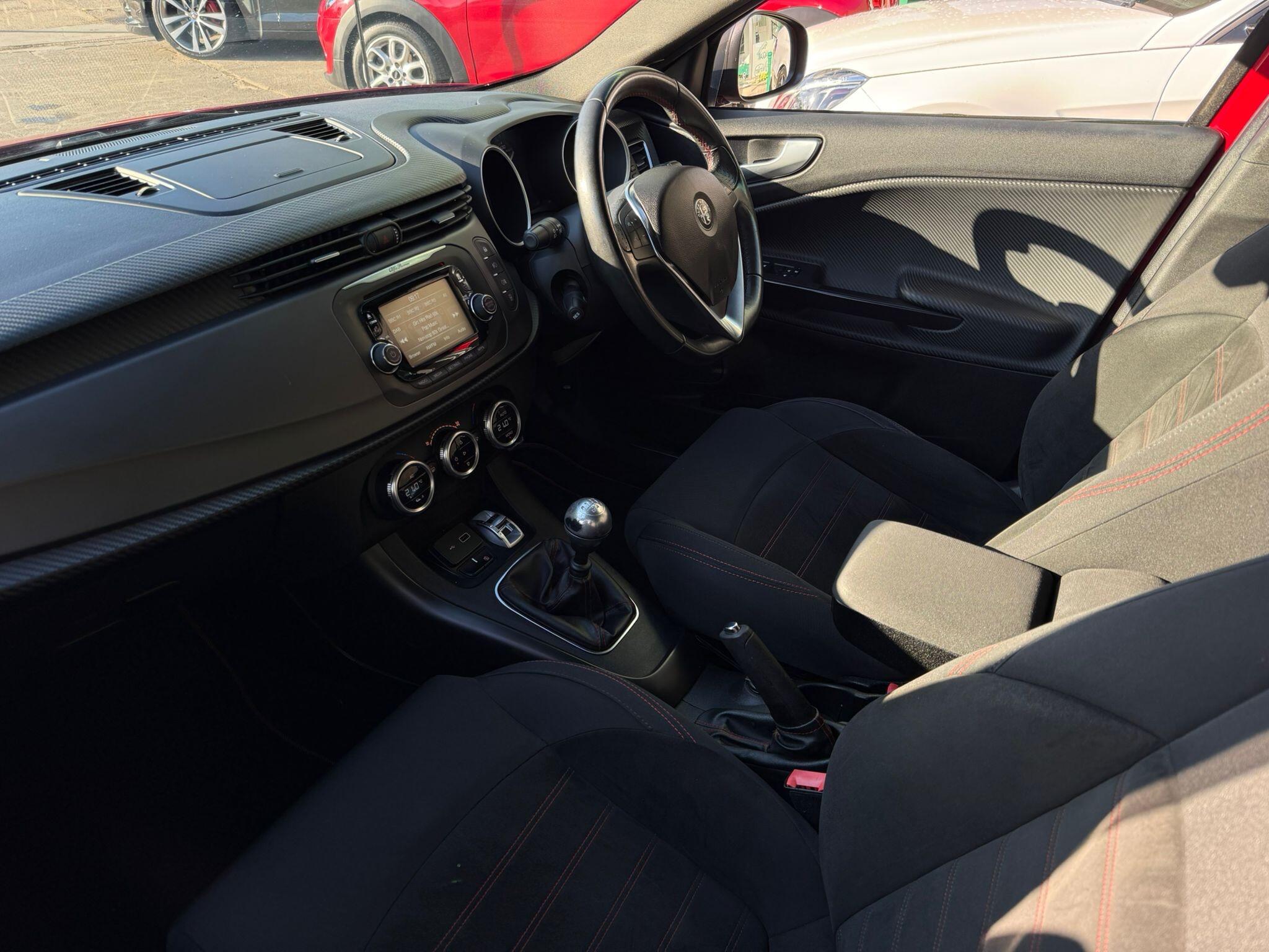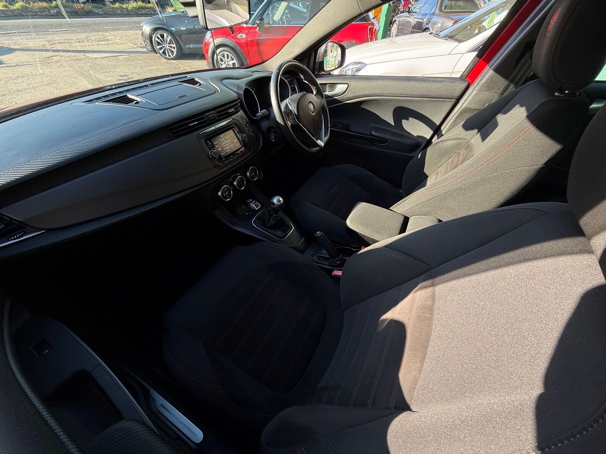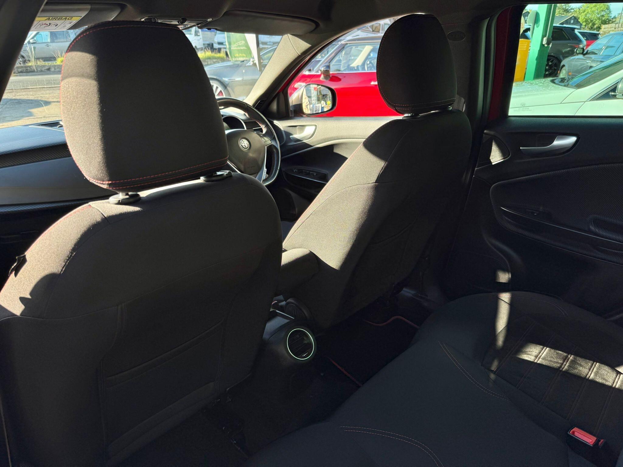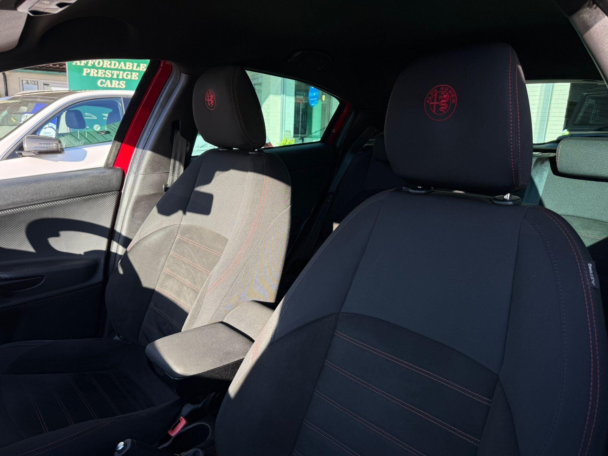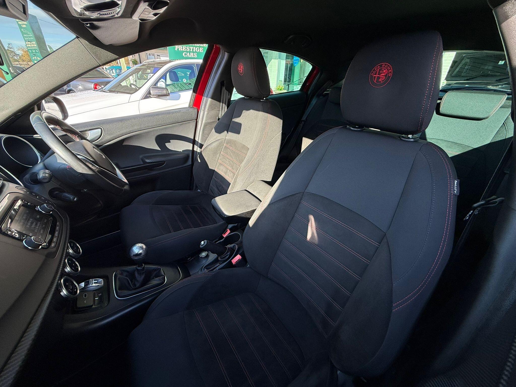 17in Alloy Wheels - Dark 5 Hole Design, 6 Airbags - Driver-Passenger-Front Side and Window, 60-40 Split Folding Rear Seats, Alfa Code Immobiliser and Alarm System, Alfa DNA Driving Mode Selector, Aluminium Kick Plate, Armrest - Front with Storage, Body Coloured Bumpers, Carbon Effect Dashboard Surround and Door Panels, Carbon Effect Headlight Moulding, Climate Control - Automatic Dual Zone, Cruise Control, Dark Exterior Finishing, Darkflair Fire Dashboard Insert, Daytime Running Lights - LED, Door Mirrors - Electrically Adjustable and Heated, Door Mirrors - Satin Effect Housing, EPS - Electric Power Assisted Steering, Electric Windows - Front and Rear, Electronic Key with Remote Central Locking and Boot Release, Electronic Q2 Differential, Enlarged Exhaust Finish, Flat-Bottomed Sports Leather Steering Wheel with Red Stitching, Front Fog Lights, Headlining - Darkened Interior, ISOFIX Attachments for Child Seat Protection, Multifunctional Display and Trip Computer, Parking Sensors - Rear, Rear Cluster Lights - LED, Red Stitching on Handbrake and Gear Gator, Safe Lock, Seats - Drivers Height Adjustment, Side Skirts, Space Saver Spare Steel Wheel - 17-18in, Sports Dials with White Illumination, Sports Front Splitter and Rear Diffuser with Red Trim, Sports Pedals - Aluminium, Storage - Front Seat Back Pockets, Suspension - Sports, TPMS - Tyre Pressure Monitoring System, Tinted Windows - Dark Rear, Uconnect 5in Colour Touchscreen Infotainment System, VDC - Vehicle Dynamic Control - ABS-ASR-Brake Assistant with Hill Holder and Electronic Q2