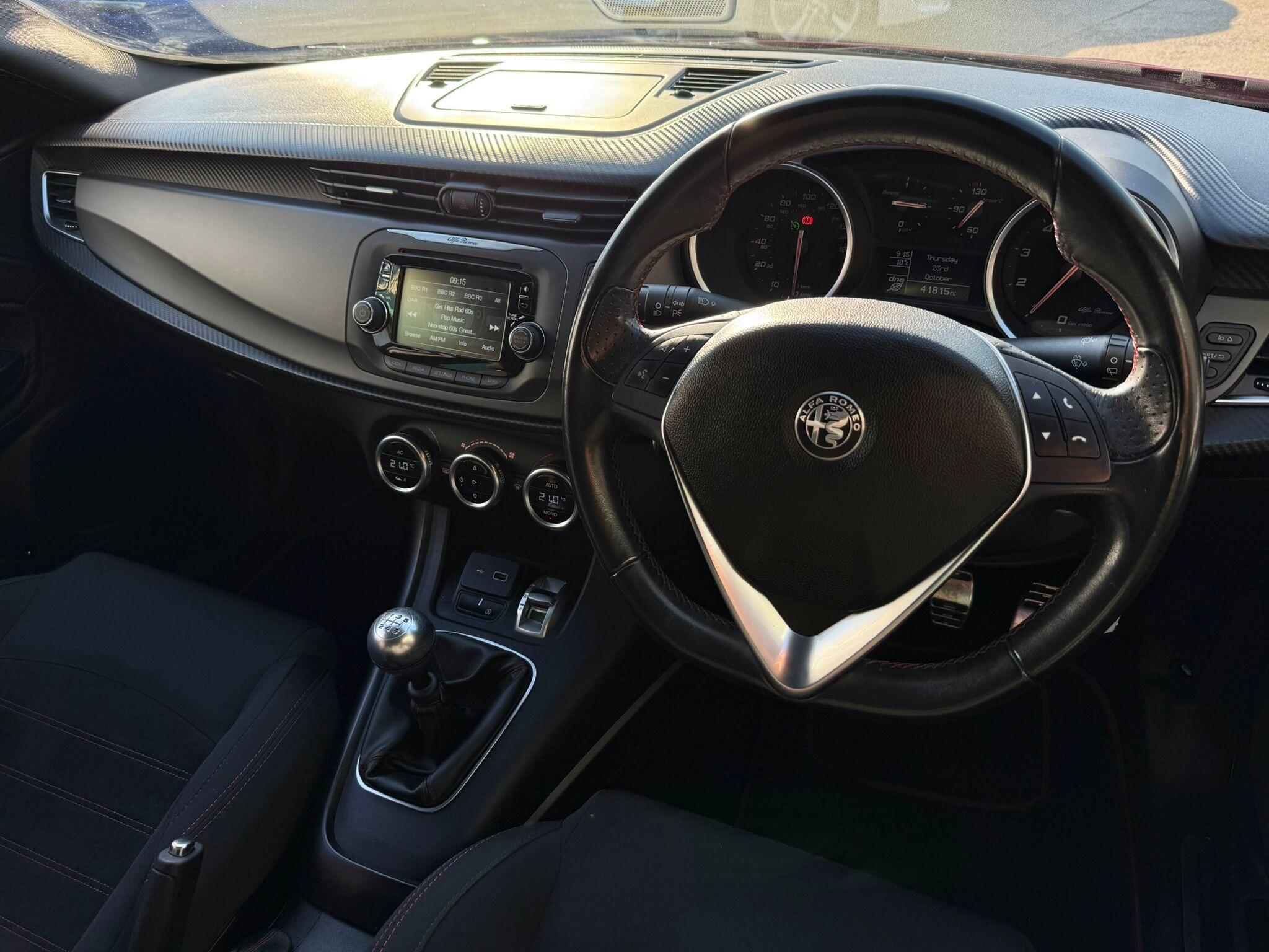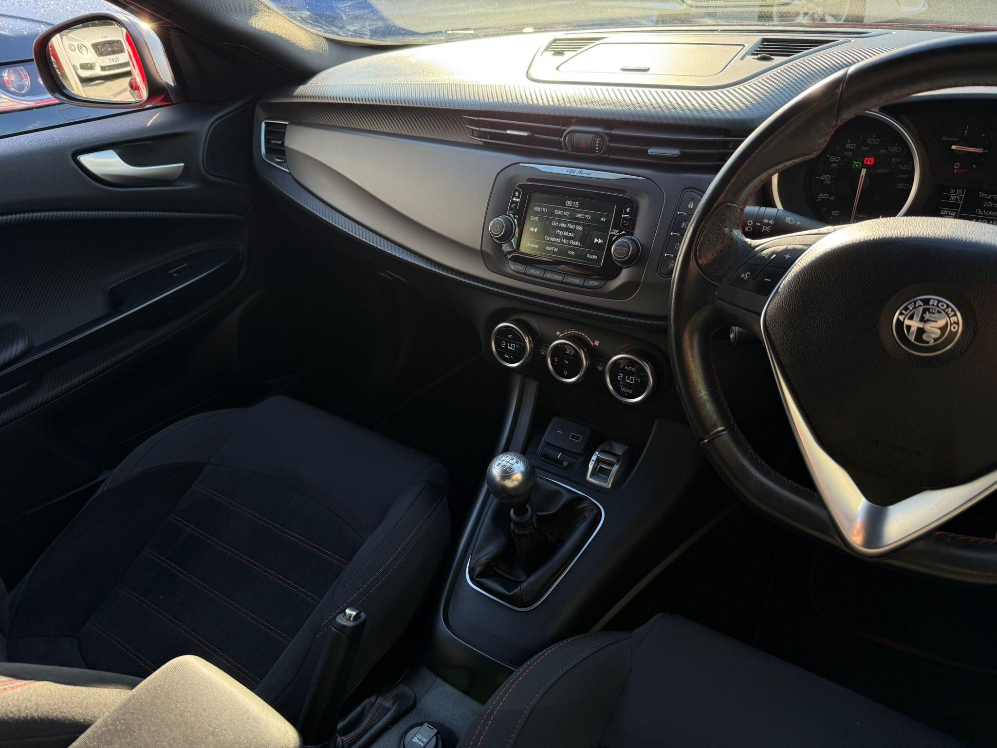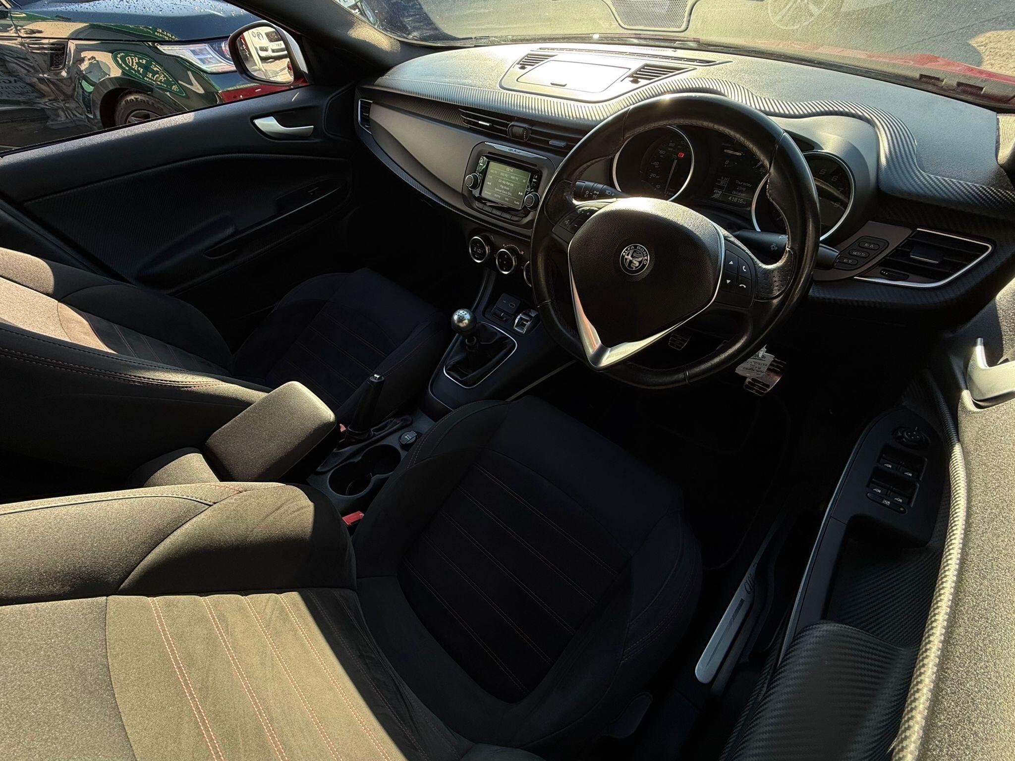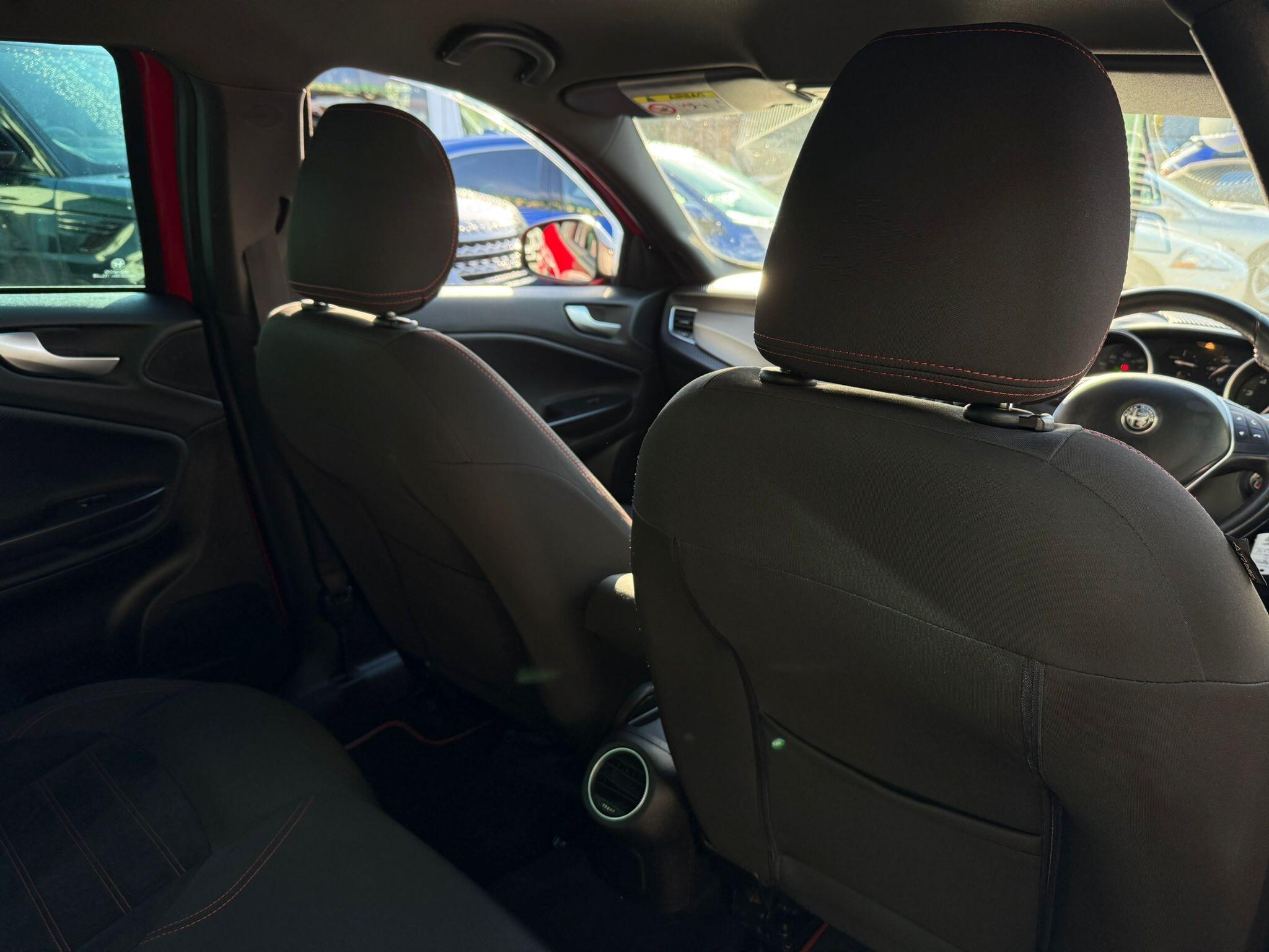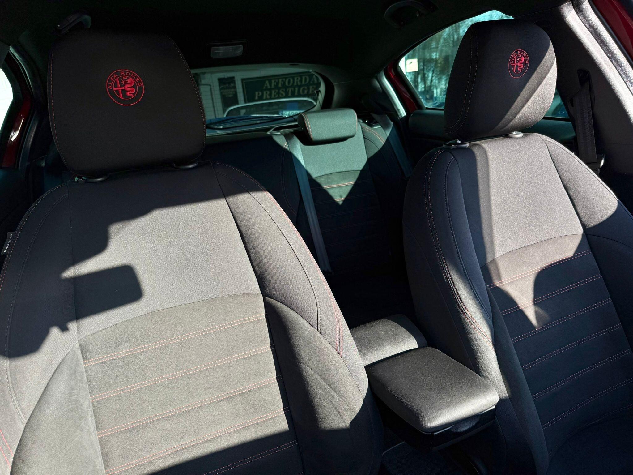 17in Alloy Wheels - Dark 5 Hole Design, 6 Airbags - Driver-Passenger-Front Side and Window, 60-40 Split Folding Rear Seats, Alfa Code Immobiliser and Alarm System, Alfa DNA Driving Mode Selector, Aluminium Kick Plate, Armrest - Front with Storage, Body Coloured Bumpers, Carbon Effect Dashboard Surround and Door Panels, Carbon Effect Headlight Moulding, Climate Control - Automatic Dual Zone, Cruise Control, Dark Exterior Finishing, Darkflair Fire Dashboard Insert, Daytime Running Lights - LED, Door Mirrors - Electrically Adjustable and Heated, Door Mirrors - Satin Effect Housing, EPS - Electric Power Assisted Steering, Electric Windows - Front and Rear, Electronic Key with Remote Central Locking and Boot Release, Electronic Q2 Differential, Enlarged Exhaust Finish, Flat-Bottomed Sports Leather Steering Wheel with Red Stitching, Front Fog Lights, Headlining - Darkened Interior, ISOFIX Attachments for Child Seat Protection, Multifunctional Display and Trip Computer, Parking Sensors - Rear, Rear Cluster Lights - LED, Red Stitching on Handbrake and Gear Gator, Safe Lock, Seats - Drivers Height Adjustment, Side Skirts, Space Saver Spare Steel Wheel - 17-18in, Sports Dials with White Illumination, Sports Front Splitter and Rear Diffuser with Red Trim, Sports Pedals - Aluminium, Storage - Front Seat Back Pockets, Suspension - Sports, TPMS - Tyre Pressure Monitoring System, Tinted Windows - Dark Rear, Uconnect 5in Colour Touchscreen Infotainment System, VDC - Vehicle Dynamic Control - ABS-ASR-Brake Assistant with Hill Holder and Electronic Q2