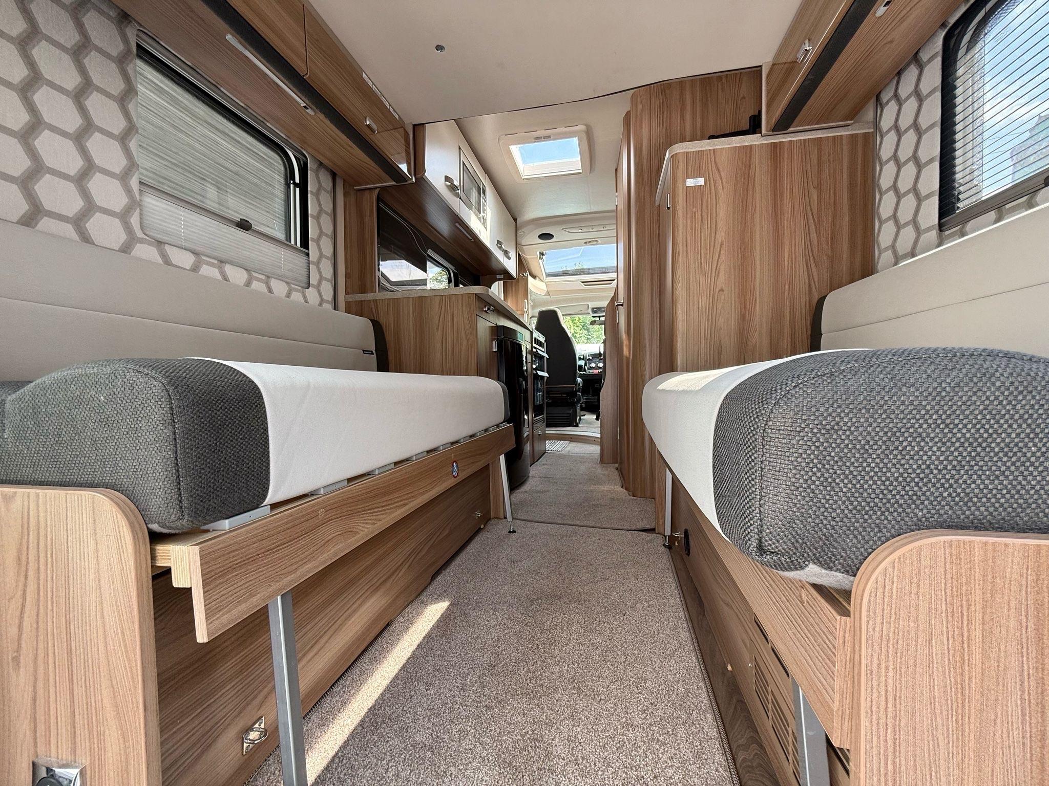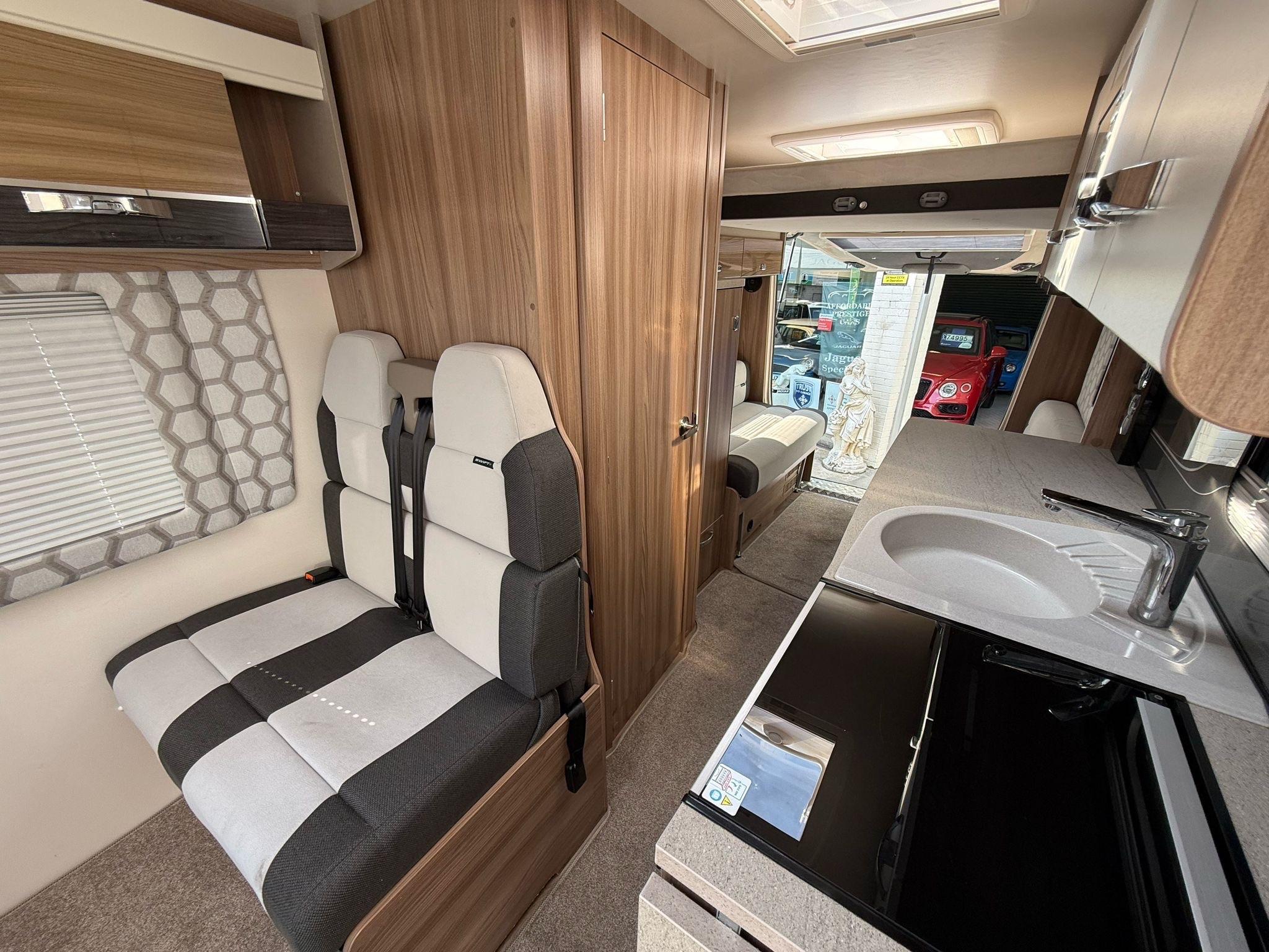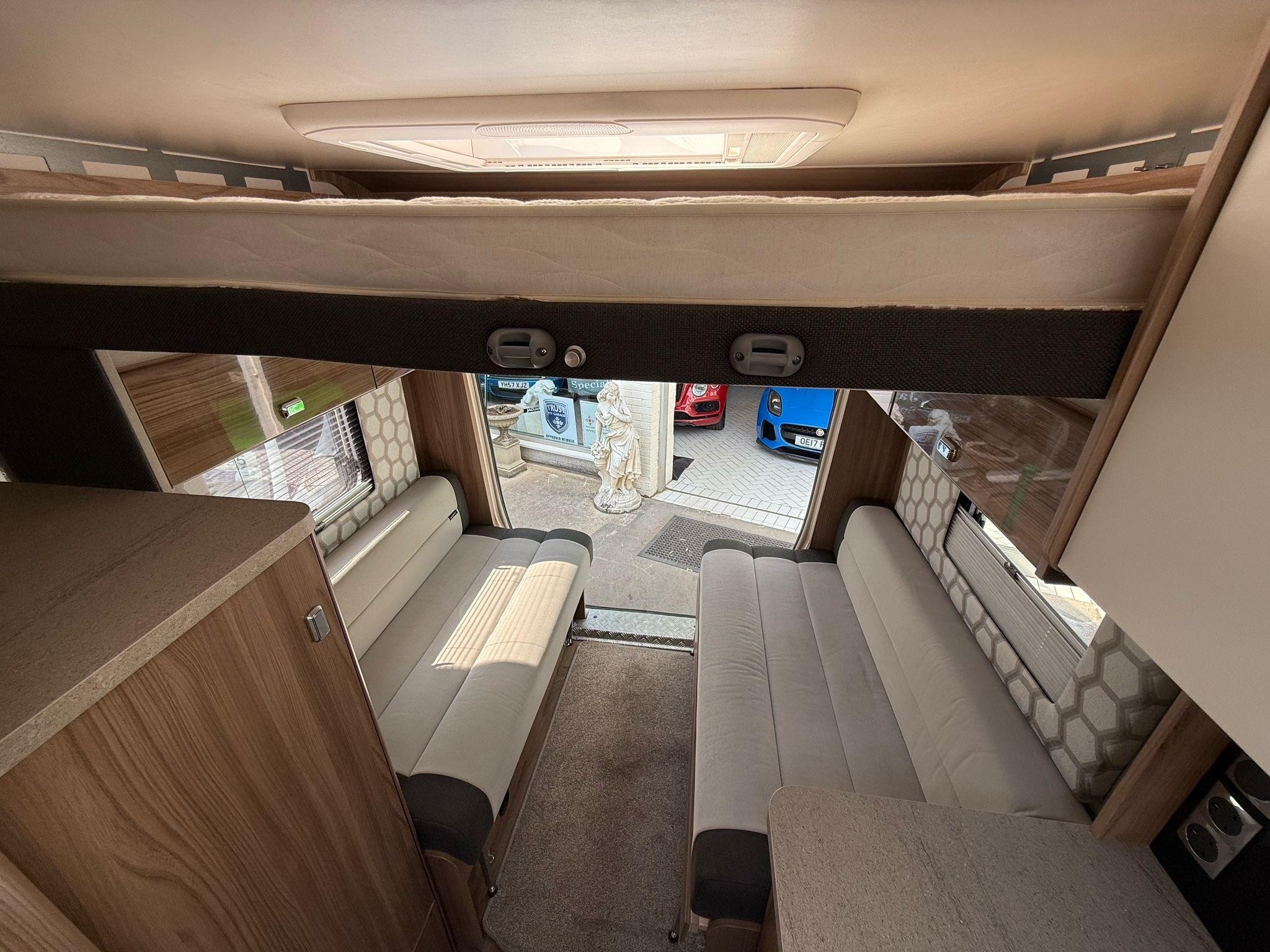 Awning Light, Alarm, Air Conditioning, Blinds, Blown Air Heating, Cassette toilet, CD / Radio, Central Locking, Colour Coded Bumpers, Cruise Control, Double Beds, Dual Fuel Hob and Grill, Electric and Gas Heating, Electric Entrance Step, Electric Heater, Electric Mirrors, Electric Water Heater, Electric Windows, End Lounge, Exterior Access/Storage Locker, Exterior Gas Bottle Locker, External 240v, External Battery Locker, External Lighting and Safety, Fire Extinguisher, Flyscreen and Blinds, Flyscreens, Free Standing Table, Freezer, Fresh Water Tank, Fresh/Waste Water Tank, Fridge/Freezer, Gas Hob, Grill, Heki rooflight, Immobiliser, Hot and Cold Shower Unit, Hob and Grill, Laminated Wall Construction, Laminated Floor Construction, Leisure Battery, Mains electric, Microwave, Microwave and Grill, Mixer Taps, Multi-Directional TV Aerial, Multi-Function Trip Computer, Oven, Satellite TV, Shower, Swivel Chairs, Swivel Drivers Seat, Swivel Passenger Seat, Toilet, TV Aerial, Wardrobe, Wind Out Awning