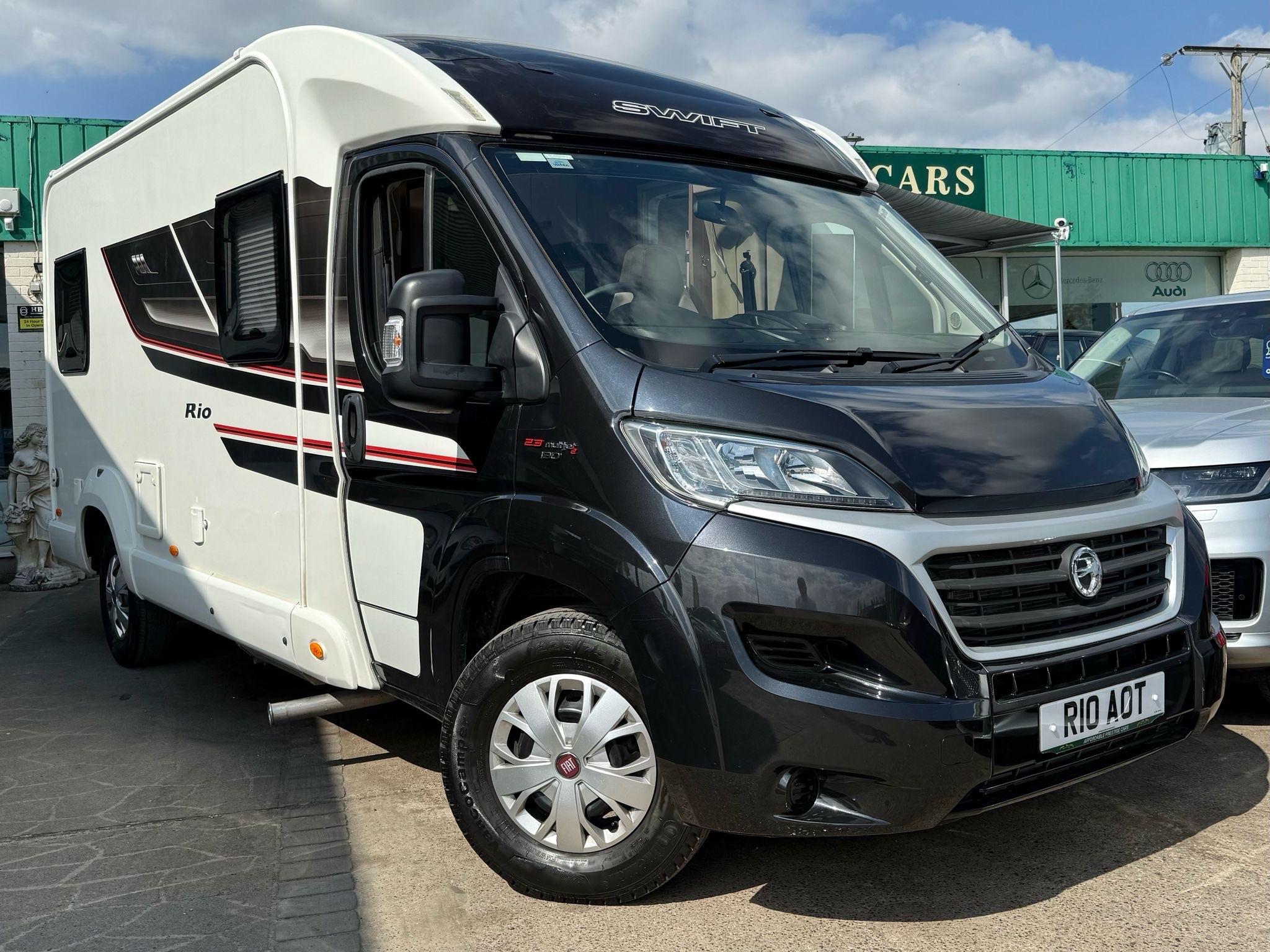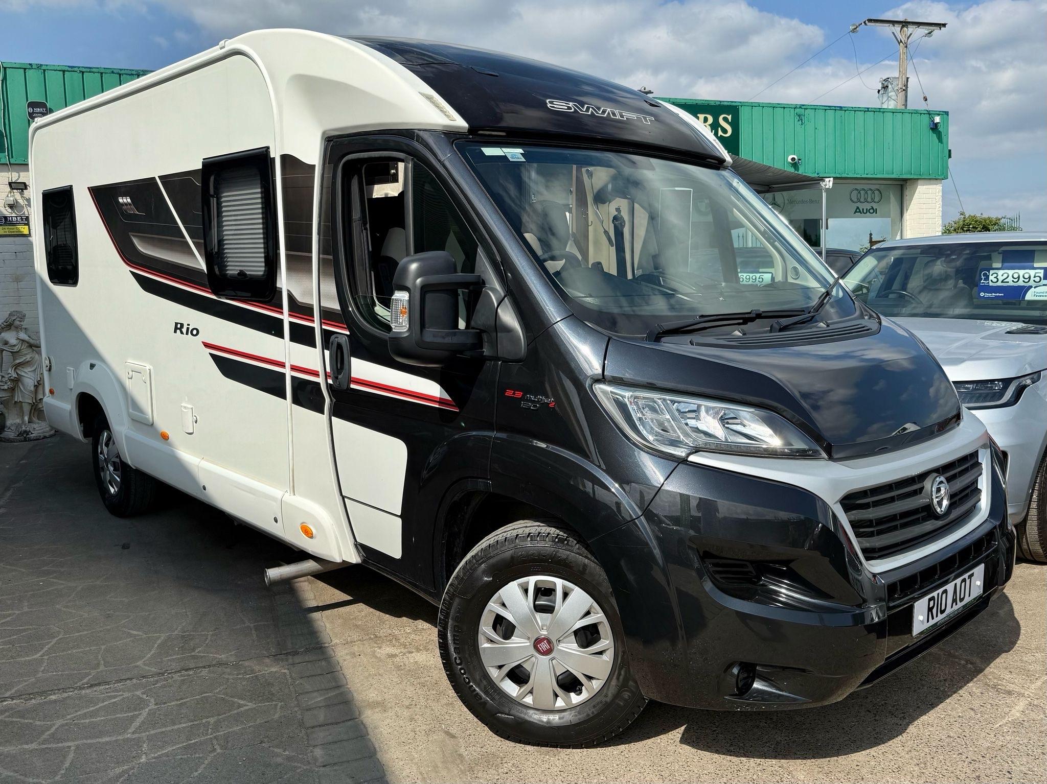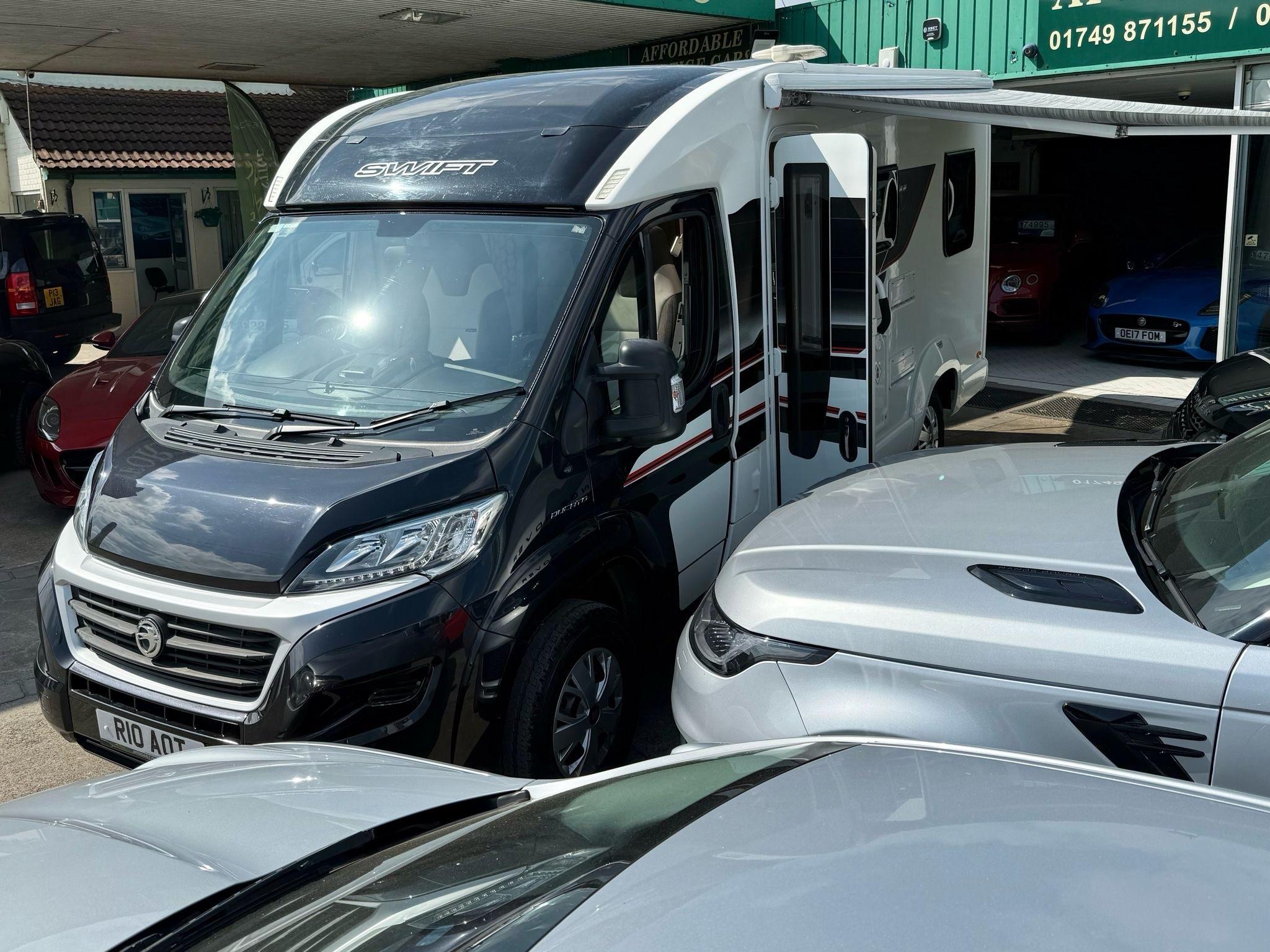 Selling on behalf of a valued customer is this virtually new Fiat Ducato Swift 4 berth motorhome. This Motorhome has covered only 10,000 miles from new with MOT until April 2026. This van has a massive spec sheet with almost too much to mention! Including Fiama F45S Wind out awning, Fiama Handle, Up and over tailgate with electronic deployable step, 2 belted rear seats, sink, hob, oven, microwave, grill, fridge freezer, toilet and shower, sky light, dining table, reading lights, cabin curtains and fly screens, rear drop down bed, 2 fixed single beds, heating, kenwood sound system, fire and carbon monoxide alarms and much, much more! If you are in the market for a virtually new motorhome thats ready to pitch up and enjoy then you must look no further! Ready for this summer and many summers to come! We also have a bag full of instruction manuals for all appliances onboard. Low deposit finance available with up to 60 month repayments.