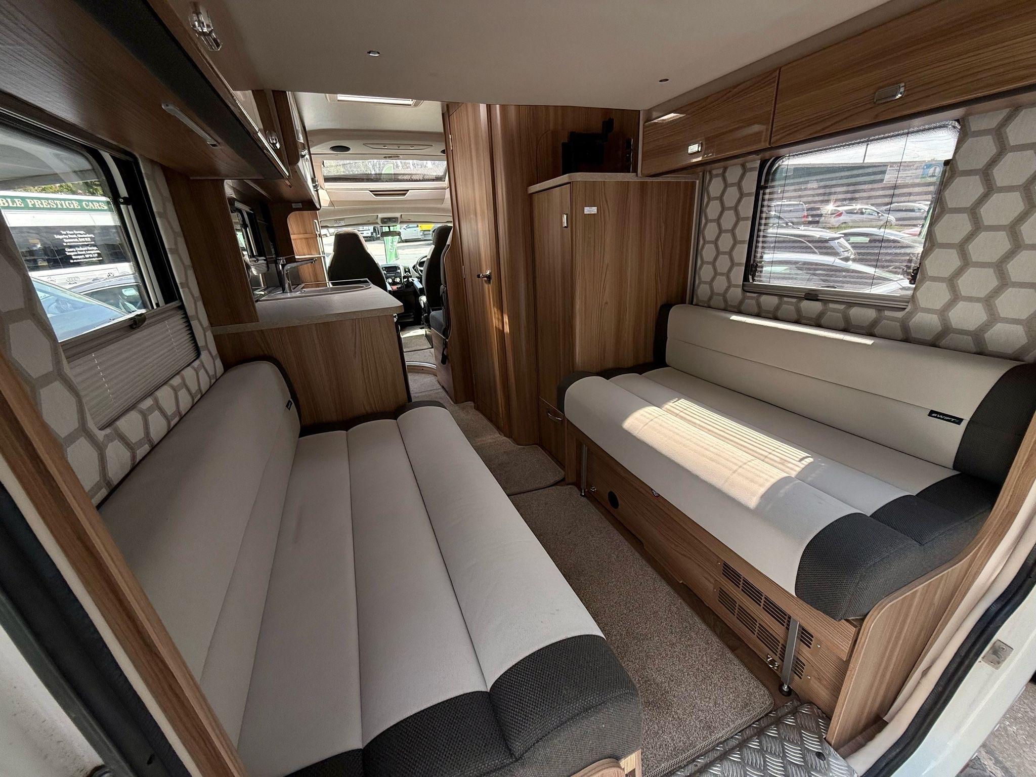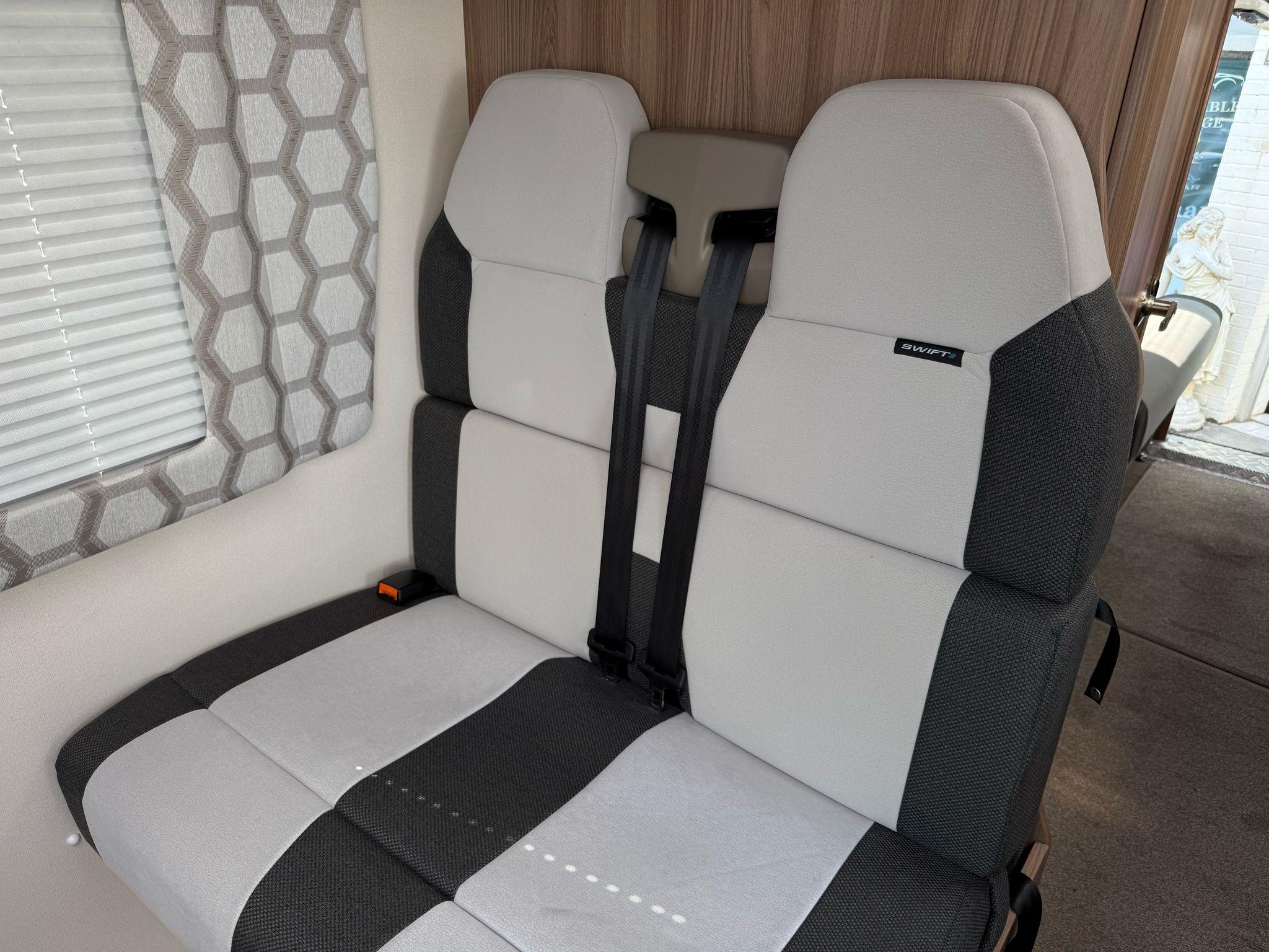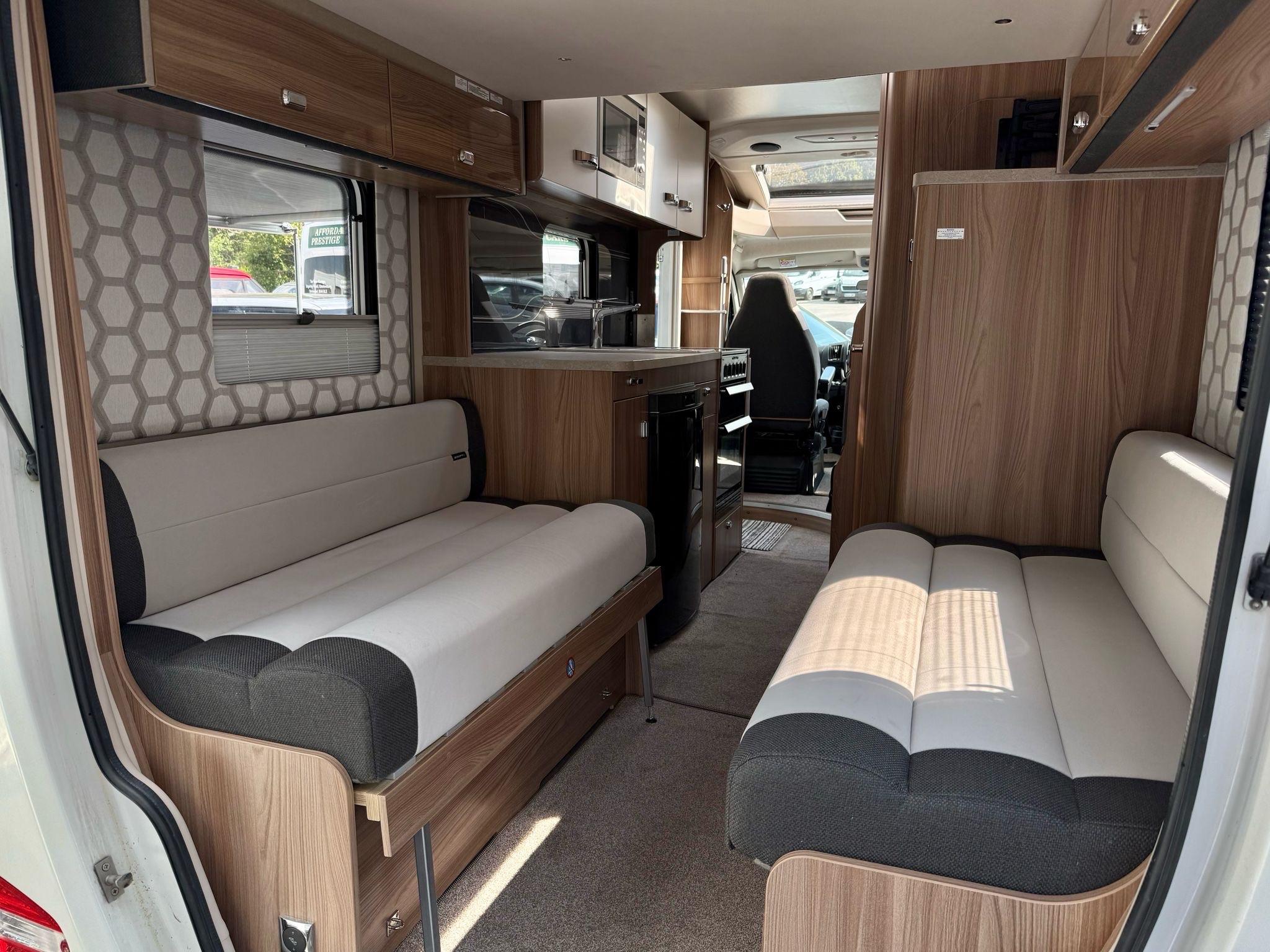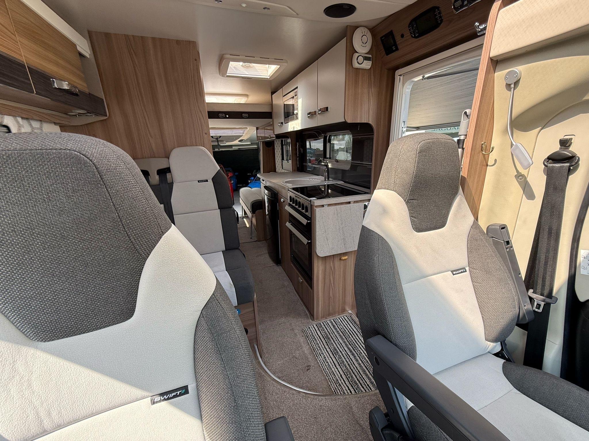 Selling on behalf of a valued customer is this virtually new Fiat Ducato Swift 4 berth motorhome. This Motorhome has covered only 10,000 miles from new with MOT until April 2026. This van has a massive spec sheet with almost too much to mention! Including Fiama F45S Wind out awning, Fiama Handle, Up and over tailgate with electronic deployable step, 2 belted rear seats, sink, hob, oven, microwave, grill, fridge freezer, toilet and shower, sky light, dining table, reading lights, cabin curtains and fly screens, rear drop down bed, 2 fixed single beds, heating, kenwood sound system, fire and carbon monoxide alarms and much, much more! If you are in the market for a virtually new motorhome thats ready to pitch up and enjoy then you must look no further! Ready for this summer and many summers to come! We also have a bag full of instruction manuals for all appliances onboard. Low deposit finance available with up to 60 month repayments.