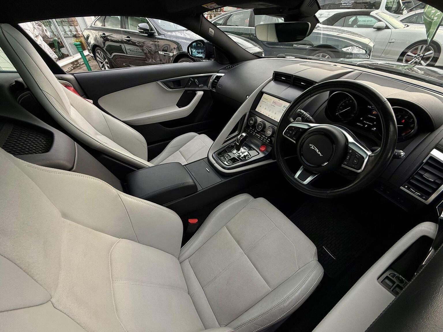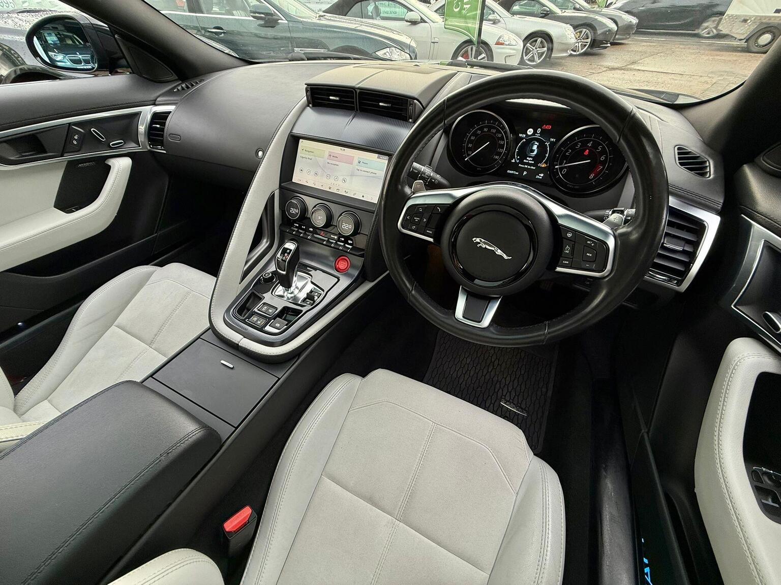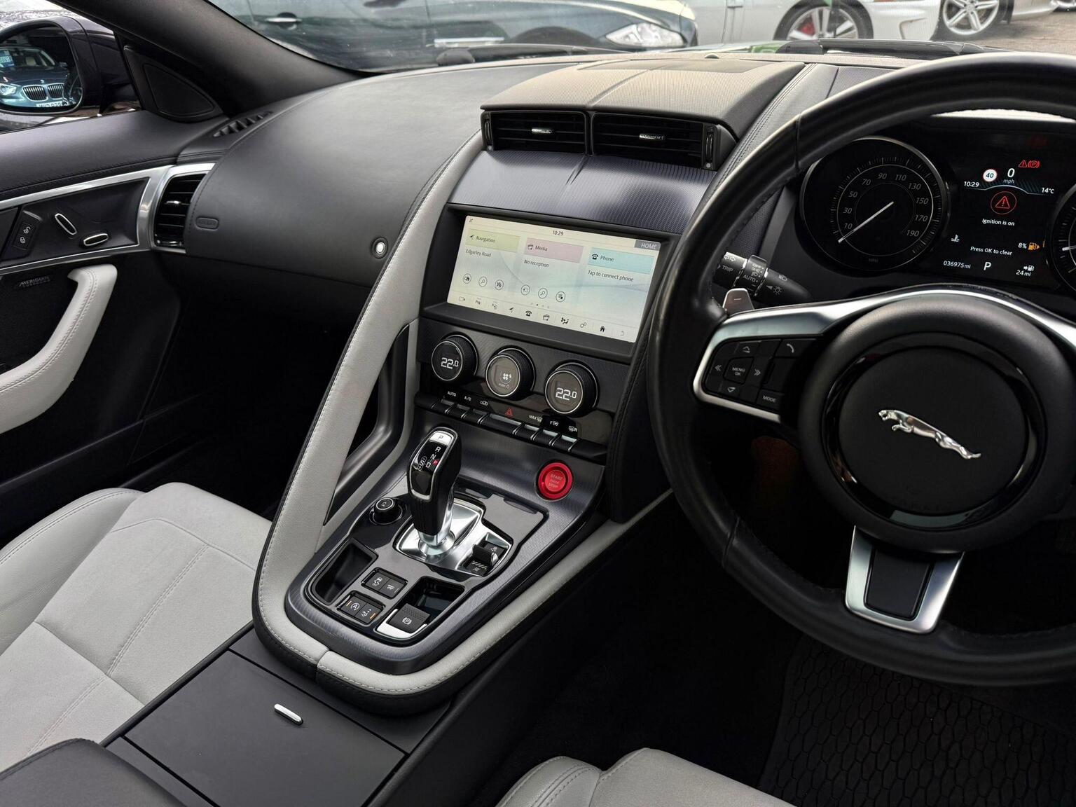 Pollen Filter, Power Assisted Steering, Pro Services, Protect, Push Button Start, R-Dynamic Badge, Rain Sensing Windscreen Wipers, Rain-Ice-Snow Mode, Rear Parking Aid, Remote Control Central Locking with Dead Locking and Drive-Away Locking, Remote Premium, Satin Black Grille with Chrome Surround, Satin Chrome Side Window Surrounds, Seats - Sports, Side Sills - Gloss Black, Silver Gearshift Paddles, Single Zone Automatic Climate Control, Standard Console, Steering Column - Electrically Adjustable, Sun Visors - Ebony Morzine, Switchable Active Sports Exhaust, Touch Pro System, Trip Computer, Twin Exhaust Pipes - Centre Mounted, Twin Front Cupholders, Tyre Pressure Monitoring System, USB and 12V Socket in Centre Console, Valet Mode, 10.2in Touchscreen, 20in Alloy Wheels - 6 Split-Spoke Style 6003 with Dark Grey Diamond Turned Finish, 380mm Front and 325mm Rear Brakes, 5in Display with Instrument Panel - 190mph-300kmh, 6 Airbags, 6-Way Electric Front Seats, ABS - Anti-locking Braking System, Adaptive Dynamics, Analogue Dials with Central TFT Display - 190mph-300kmh, Auto-Dimming Interior Rear View Mirror, Autonomous Emergency Braking, Black Brake Calipers, Bluetooth Connectivity, Boot Entrapment Release Lever, Carpet Mats - Premium, Chrome Instrument Cluster Dial Rings, Cruise Control with Speed Limiter, Delta Aluminium Centre Console, Deployable Boot Lid Spoiler, Digital Audio Broadcast - DAB - Radio, Door Mirrors - Body Coloured, Door Trim - Luxtec, Driver Condition Monitor, Dynamic Mode, Dynamic Stability Control - DSC, EBA - Emergency Brake Assist, EBD - Electronic Brake-Force Distribution, EPB - Electric Parking Brake, Ebony Door Release, Ebony Morzine Headlining, Electric Windows - Front, F-TYPE Badge, Fixed Aluminium Roof, Flush Exterior Door Handles, Front Deployable Vents, Gloss Black Bonnet Louvres, Gloss Black Front Bumper Beam - Gloss Black Chin - Chrome Insert, Gloss Black Rear Valance and Venturi Blade, Graphite Interior Trim Accent, Graphite Vent Surrounds, Heated Door Mirrors, InControl Apps, Infrared Reflective Windscreen, Interior Lighting, Jaguar Tyre Repair System, LED Headlights with Signature Daytime Running Lights and Adaptive Front Lighting, LED Tail Lights, Lane Departure Warning, Lane Keep Assist, Leather Steering Wheel, Limited Slip Differential with Torque Vectoring by Braking, Low Line Cubby Box, Luxtec Wrapped Instrument Panel Topper, Meridian Sound System, Metal Treadplates with R-Dynamic Branding, Navigation Pro System, Not Heated Steering Wheel, Overhead Lighting Console, P380 AWD Badge, Pedestrian Contact Sensing, Perimeter Sensing Alarm and Immobiliser