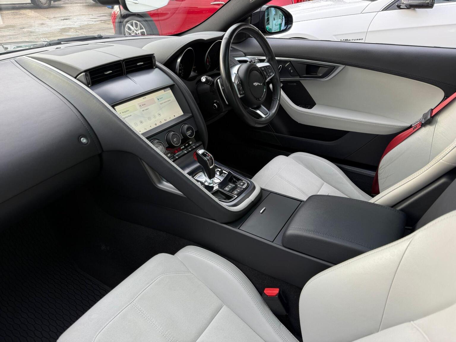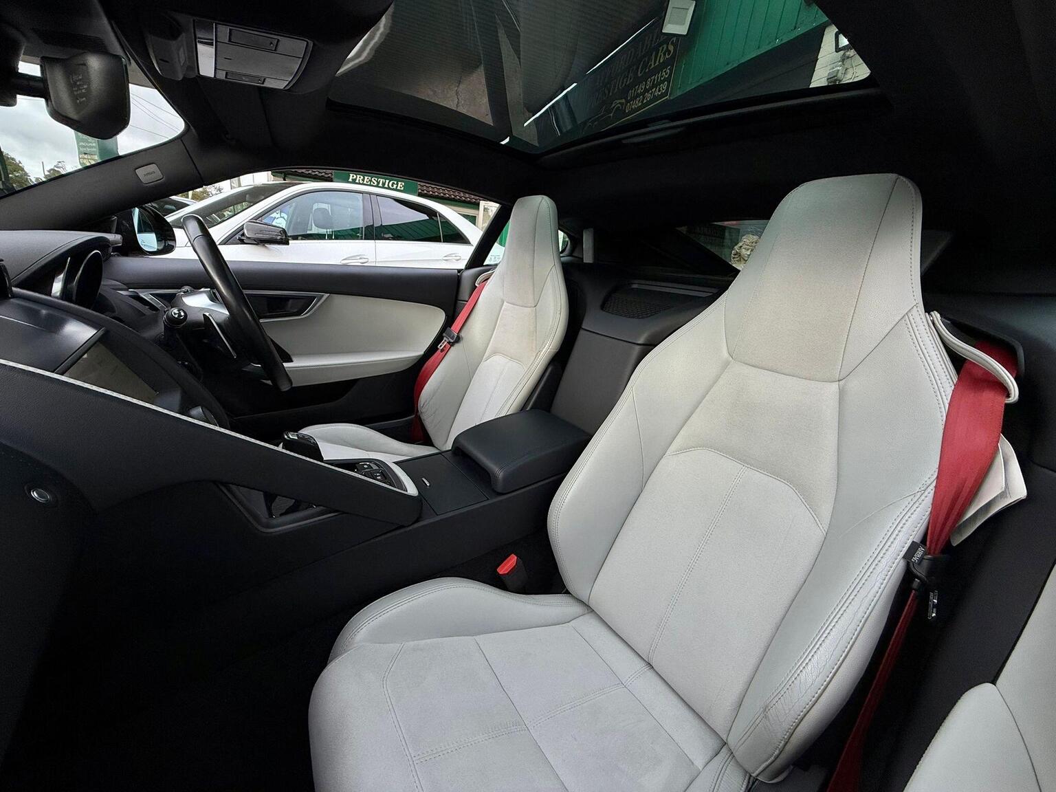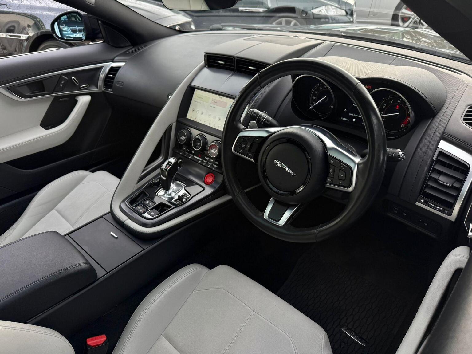 Pollen Filter, Power Assisted Steering, Pro Services, Protect, Push Button Start, R-Dynamic Badge, Rain Sensing Windscreen Wipers, Rain-Ice-Snow Mode, Rear Parking Aid, Remote Control Central Locking with Dead Locking and Drive-Away Locking, Remote Premium, Satin Black Grille with Chrome Surround, Satin Chrome Side Window Surrounds, Seats - Sports, Side Sills - Gloss Black, Silver Gearshift Paddles, Single Zone Automatic Climate Control, Standard Console, Steering Column - Electrically Adjustable, Sun Visors - Ebony Morzine, Switchable Active Sports Exhaust, Touch Pro System, Trip Computer, Twin Exhaust Pipes - Centre Mounted, Twin Front Cupholders, Tyre Pressure Monitoring System, USB and 12V Socket in Centre Console, Valet Mode, 10.2in Touchscreen, 20in Alloy Wheels - 6 Split-Spoke Style 6003 with Dark Grey Diamond Turned Finish, 380mm Front and 325mm Rear Brakes, 5in Display with Instrument Panel - 190mph-300kmh, 6 Airbags, 6-Way Electric Front Seats, ABS - Anti-locking Braking System, Adaptive Dynamics, Analogue Dials with Central TFT Display - 190mph-300kmh, Auto-Dimming Interior Rear View Mirror, Autonomous Emergency Braking, Black Brake Calipers, Bluetooth Connectivity, Boot Entrapment Release Lever, Carpet Mats - Premium, Chrome Instrument Cluster Dial Rings, Cruise Control with Speed Limiter, Delta Aluminium Centre Console, Deployable Boot Lid Spoiler, Digital Audio Broadcast - DAB - Radio, Door Mirrors - Body Coloured, Door Trim - Luxtec, Driver Condition Monitor, Dynamic Mode, Dynamic Stability Control - DSC, EBA - Emergency Brake Assist, EBD - Electronic Brake-Force Distribution, EPB - Electric Parking Brake, Ebony Door Release, Ebony Morzine Headlining, Electric Windows - Front, F-TYPE Badge, Fixed Aluminium Roof, Flush Exterior Door Handles, Front Deployable Vents, Gloss Black Bonnet Louvres, Gloss Black Front Bumper Beam - Gloss Black Chin - Chrome Insert, Gloss Black Rear Valance and Venturi Blade, Graphite Interior Trim Accent, Graphite Vent Surrounds, Heated Door Mirrors, InControl Apps, Infrared Reflective Windscreen, Interior Lighting, Jaguar Tyre Repair System, LED Headlights with Signature Daytime Running Lights and Adaptive Front Lighting, LED Tail Lights, Lane Departure Warning, Lane Keep Assist, Leather Steering Wheel, Limited Slip Differential with Torque Vectoring by Braking, Low Line Cubby Box, Luxtec Wrapped Instrument Panel Topper, Meridian Sound System, Metal Treadplates with R-Dynamic Branding, Navigation Pro System, Not Heated Steering Wheel, Overhead Lighting Console, P380 AWD Badge, Pedestrian Contact Sensing, Perimeter Sensing Alarm and Immobiliser
