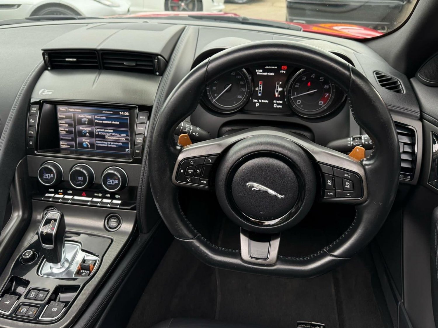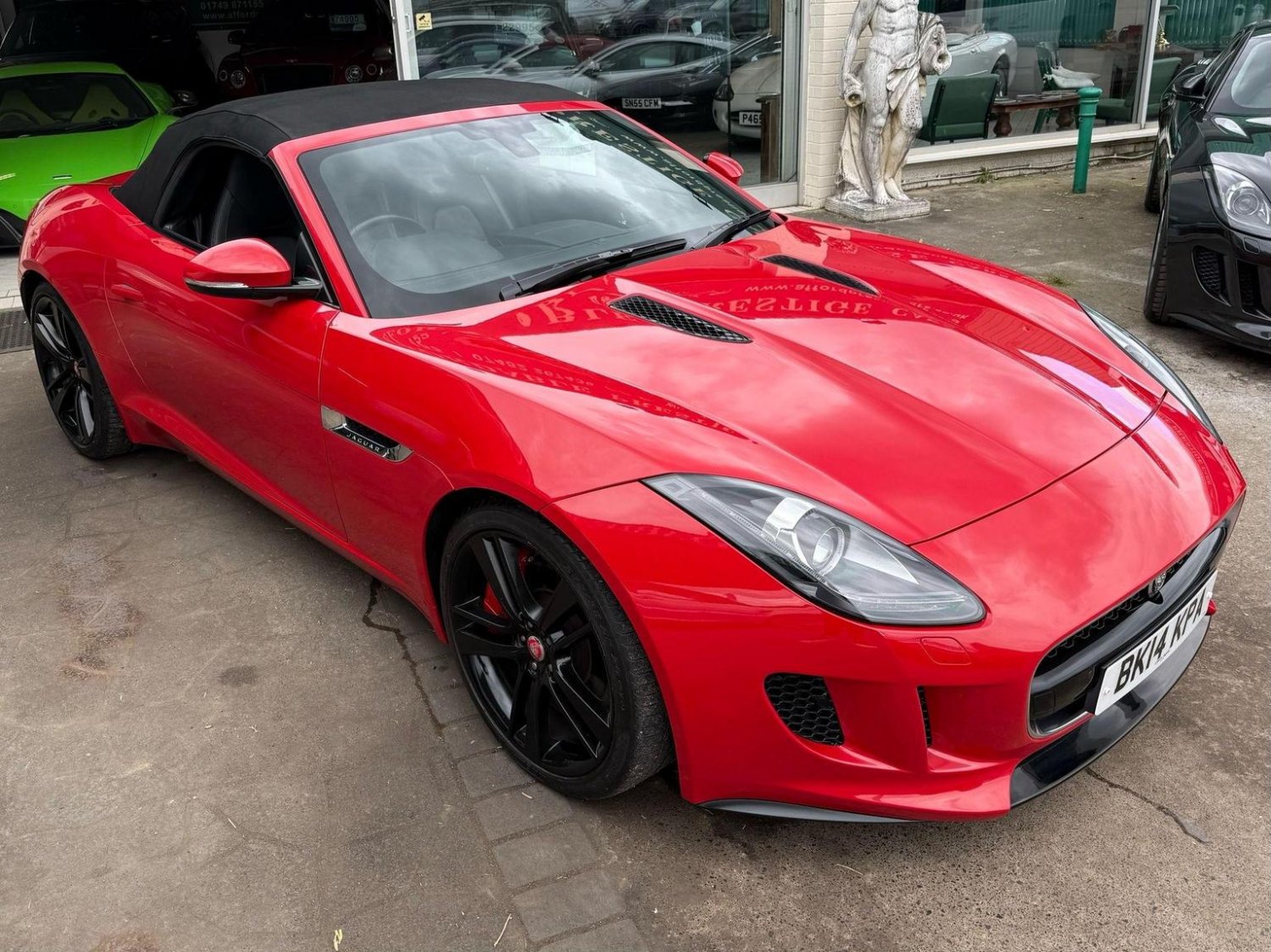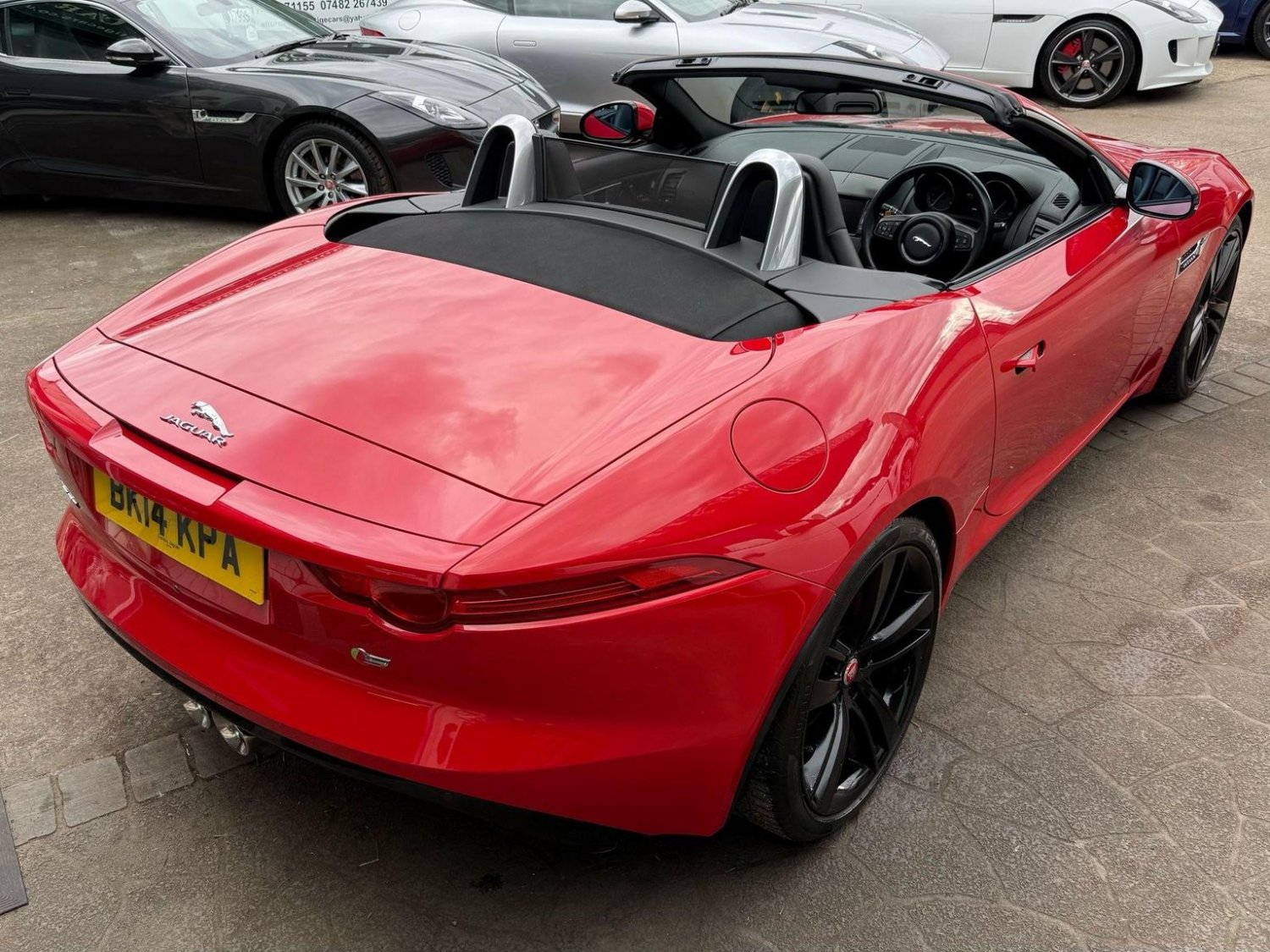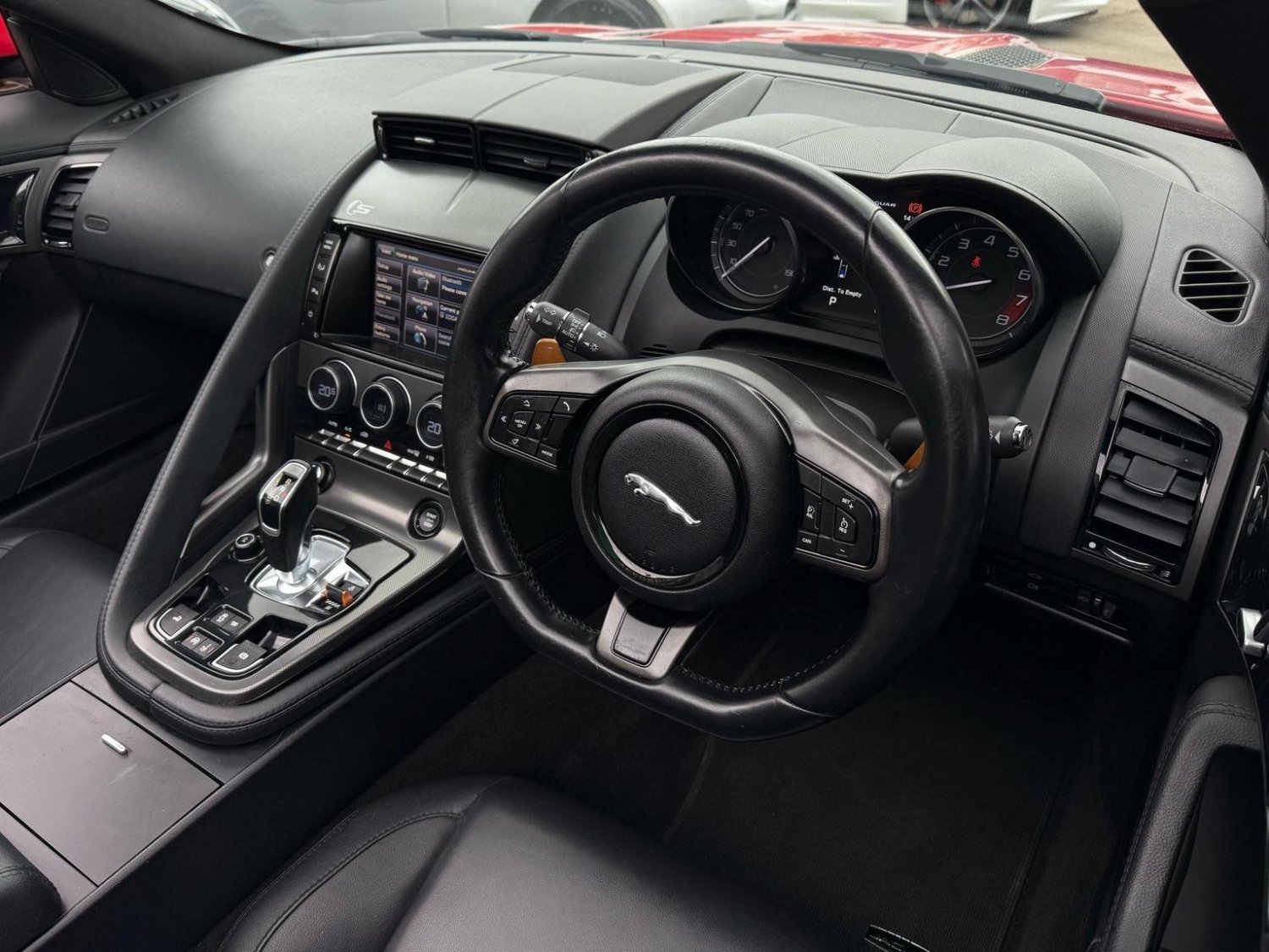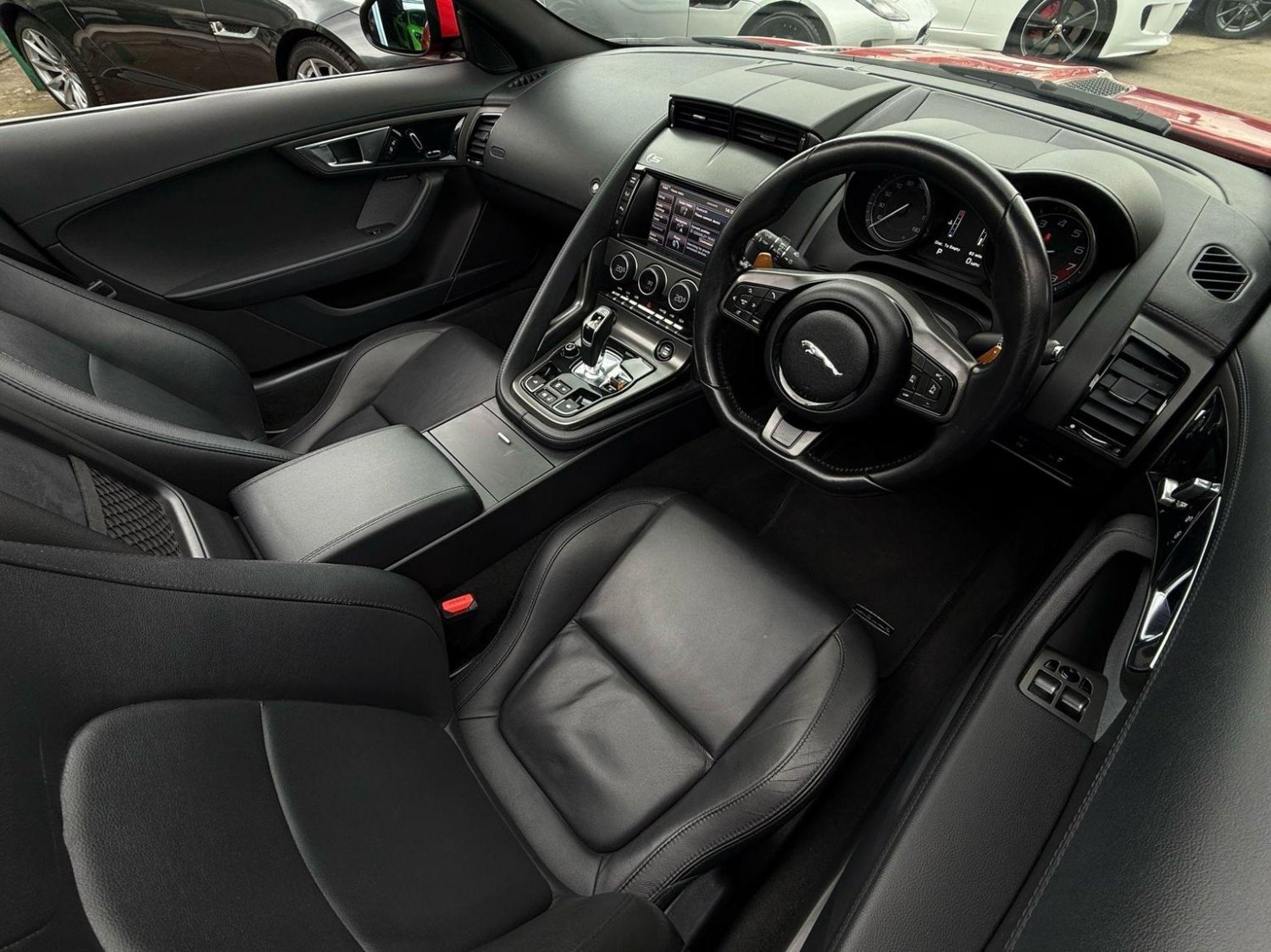 19in Alloy Wheels - Propeller, ABS - Anti-locking Braking System, ASL - Automatic Speed Limiter, Active Sports Exhaust, Adaptive Dynamics, Air Particle and Odour Filtration, Airbags - Driver, Airbags - Front Side, Airbags - Passenger, Airbags - Side Curtain, Auto-Dimming Interior Rear View Mirror, Automatic Headlight Washers, Auxiliary Power Sockets, Bluetooth Telephone Connectivity, CD Player - AM/FM Radio, Centre Console - Dark Hex Aluminium with S Graphic, Configurable Ambient Interior Lighting - Dual Colour with Mixing Pallete, Convertible Roof - Full Electric Black, Cruise Control, DAB Radio Receiver, Door Mirrors - Electric Adjustment-Heated with Side Repeaters, Dynamic Stability Control and Winter Mode, EBA - Emergency Brake Assist, EBD - Electronic Brake-Force Distribution, EPB - Electronic Parking Brake - Drive Away Release, Electric Windows - Front with One Touch Open and Close-Anti Trap, Header and Headlining - Jet, Headlights - Bi-Function HID Xenon with LED Daytime Running Lights, Jaguar 180W Sound System - 6 Speakers, Jaguar High Performance Braking System with Red Calipers, Jaguar Tyre Repair System, Limited Slip Differential, Navigation with Route Guidence with Traffic Messaging Channel, Pedestrian Contact Sensing and Deployable Bonnet, Power Steering - Speed Sensitive, Rear Parking Aid with Touch Screen Visual Indicator, Rear Spoiler - Body Coloured, Remote Control Central Locking with Dead Locking and Drive-Away Locking, Roll Over Protection Bars - Satin Chrome, S Badge, Seats - Electric Driver-Passenger Adjustment - 6x6 Way, Single Zone Automatic Climate Control, Sports Sunvisor, Sports Suspension, Steering Column - Electrically Adjustable, Steering Wheel - 3-Spoke-Leather-Shift Paddles, Tinted Rear Window, Twin Front Cupholders, USB and Aux Socket in Centre Cubby Box, Volumetric Sensing