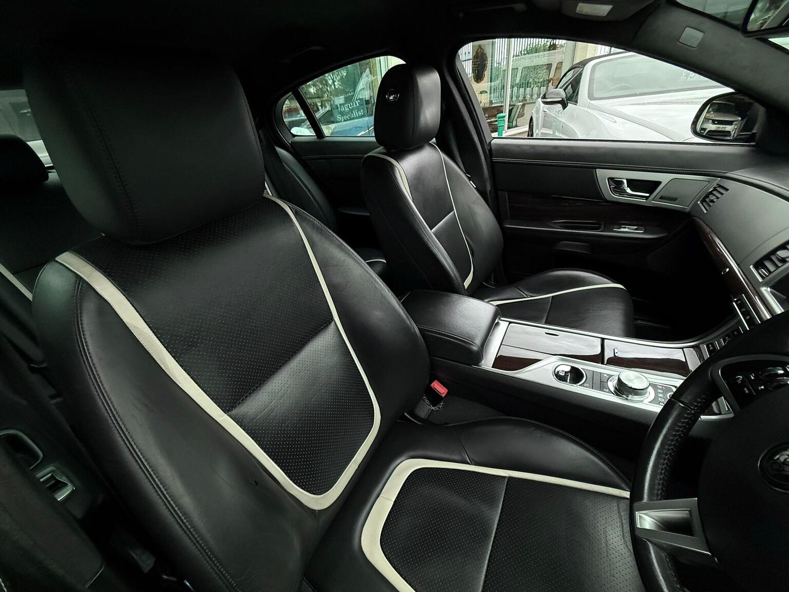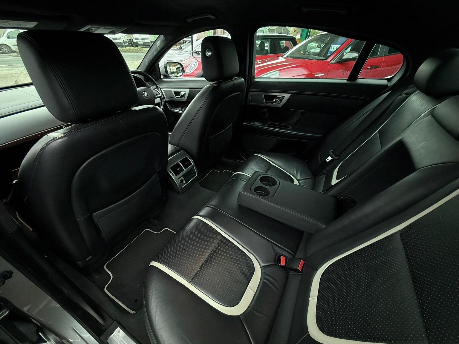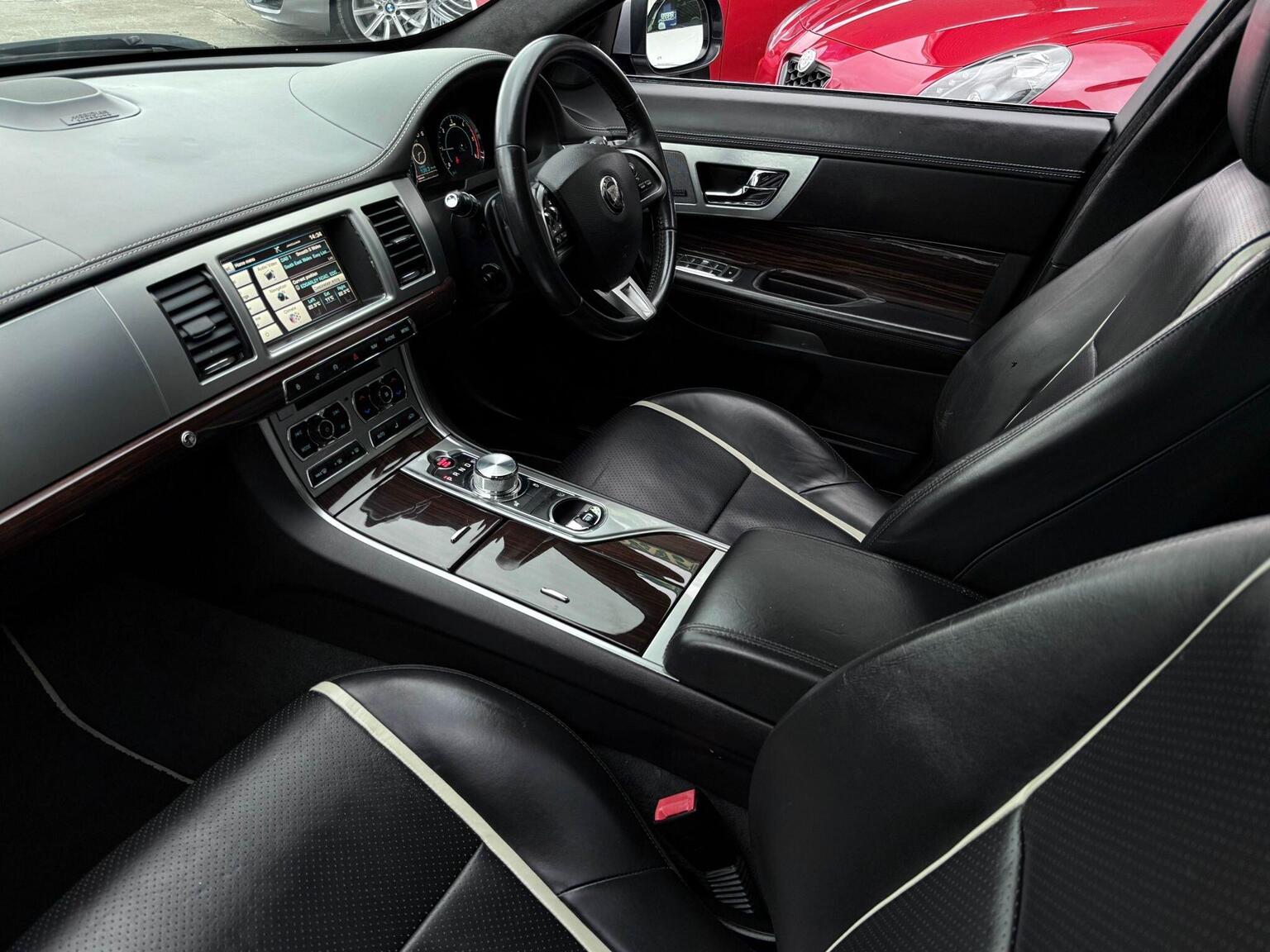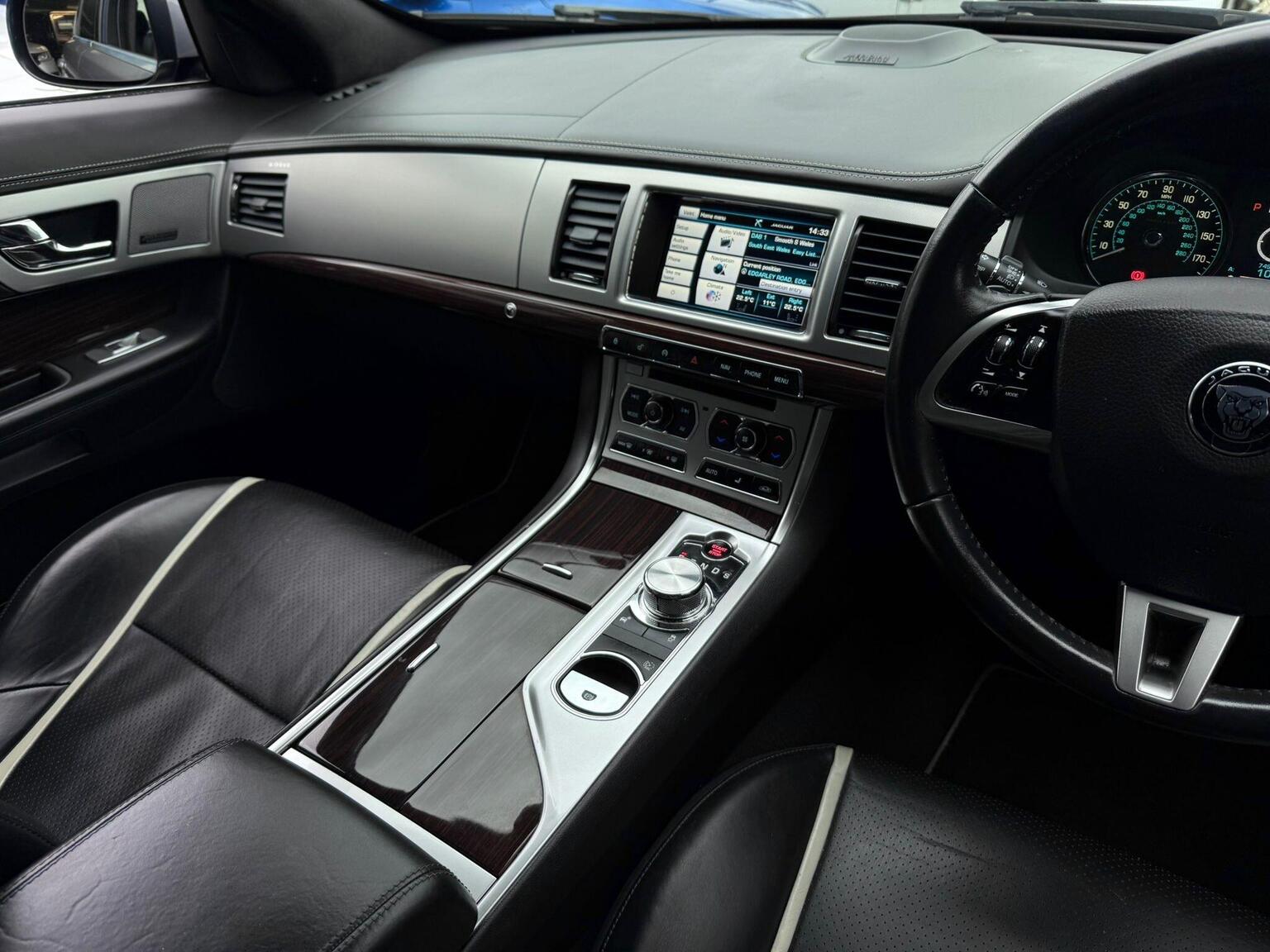19in Alloy Wheels - Caravela, 3-Flash Lane Change Indicators, 3.5mm Stereo Auxiliary Input Socket, 7in Colour Touch Screen Display, ABS - Anti-locking Braking System, ASL - Automatic Speed Limiter, Acoustic Layer Windshield, Airbags - Driver, Airbags - Front Side, Airbags - Passenger, Airbags - Side Curtain, Approach Illumination - Automatic via Remote, Audio Equipment - Meridian Audio System 380W-Radio-CD-MP3, Auto-Dimming Interior Rear View Mirror, Automatic Headlight On, Automatic Headlight Washers, Auxiliary Heater, Auxiliary Power Point in Rear, Bluetooth Connectivity, Brake Pad Wear Indicator, Chrome Grille with Chrome Surround, Cruise Control, DAB Radio Receiver, Diesel Misfuelling Protection Device, Door Mirrors - Electric Adjustment-Heated-Auto Dimming-Powerfolding-Side Repeaters, Driver Information Centre with Dual Function Trip Computer, Driver and Front Passenger Sun Visors with Illuminated Vanity Mirrors, Driver and Passenger Electric Seat Height Adjustment, Drivers Foot Rest, Dual Zone Automatic Climate Control, EBA - Emergency Brake Assist, EBD - Electronic Brake-Force Distribution, EPB - Electronic Parking Brake - Drive Away Release, Electric Windows, Front Centre Console with Storage Compartment and Twin Cupholders, Front Courtesy Footwell Lights, Front Media Interface, Front Seats - Whiplash Reduction System, Hazard Lights Under Heavy Braking, Head Restraint - Rear Centre, Headlights - Automatic Levelling, Headlights - LED Signature Lights with Daytime Running, Headlights - Xenon, Headlining - Premium Jaguar Suedecloth and Pillar Trims, Heated Rear Window with Timer, ISOFIX Anchor Points for Rear Child Seat, Interior Mood Lighting - Phosphor Blue Halo Illumination, Jaguar Smart Key System with Keyless Entry, Jaguar Tyre Repair System, JaguarDrive Control with Sport and Winter Mode, JaguarDrive Selector, JaguarSense - Overhead Light Console, LED Tail Lights, Passive Suspension, Pedestrian Contact Sensing and Deployable Bonnet, Premium Carpet Mat Set - Front and Rear, Rain Sensing Windscreen Wipers, Rear Coat Hooks, Rear Parking Aid with Touch Screen Visual Indicator, Remote Control Boot Release, Remote Control Central Locking with Dead Locking and Drive-Away Locking, Remote Controls for Audio System, Satellite Navigation, Seats - Electric Driver/Passenger Adjustment - 16x12 Way with Memory, Seats - Front - Back Map Pockets, Seats - Front Heated and Cooled, Seats - Lumbar Support - Driver-Passenger-4 Way Power, Seats - Rear Centre Armrest, Seats - Rear Folding - 60/40 split, Security System, Servotronic Steering, Single Elliptical Tailpipe, Speakers x11 including 1 Subwoofer, Steering Column - Electric Adjustment for Height and Reach with Entry and Exit Tilt-Away, Steering Wheel - 3-Spoke-Leather-Shift Paddles, TFT Message Centre, Tailored Instrument Panel - Soft Grain Leather Stitched with Contrast Stitching, Trac DSC - Dynamic Stability Control with 3 Setting Levels, Traction Control, Twin Cupholders in Rear Seat Centre Armrest, Two Front/One Rear Auxiliary Sockets, Veneer - Figured Ebony, Windscreen - Heated with Timer, XF Badge
