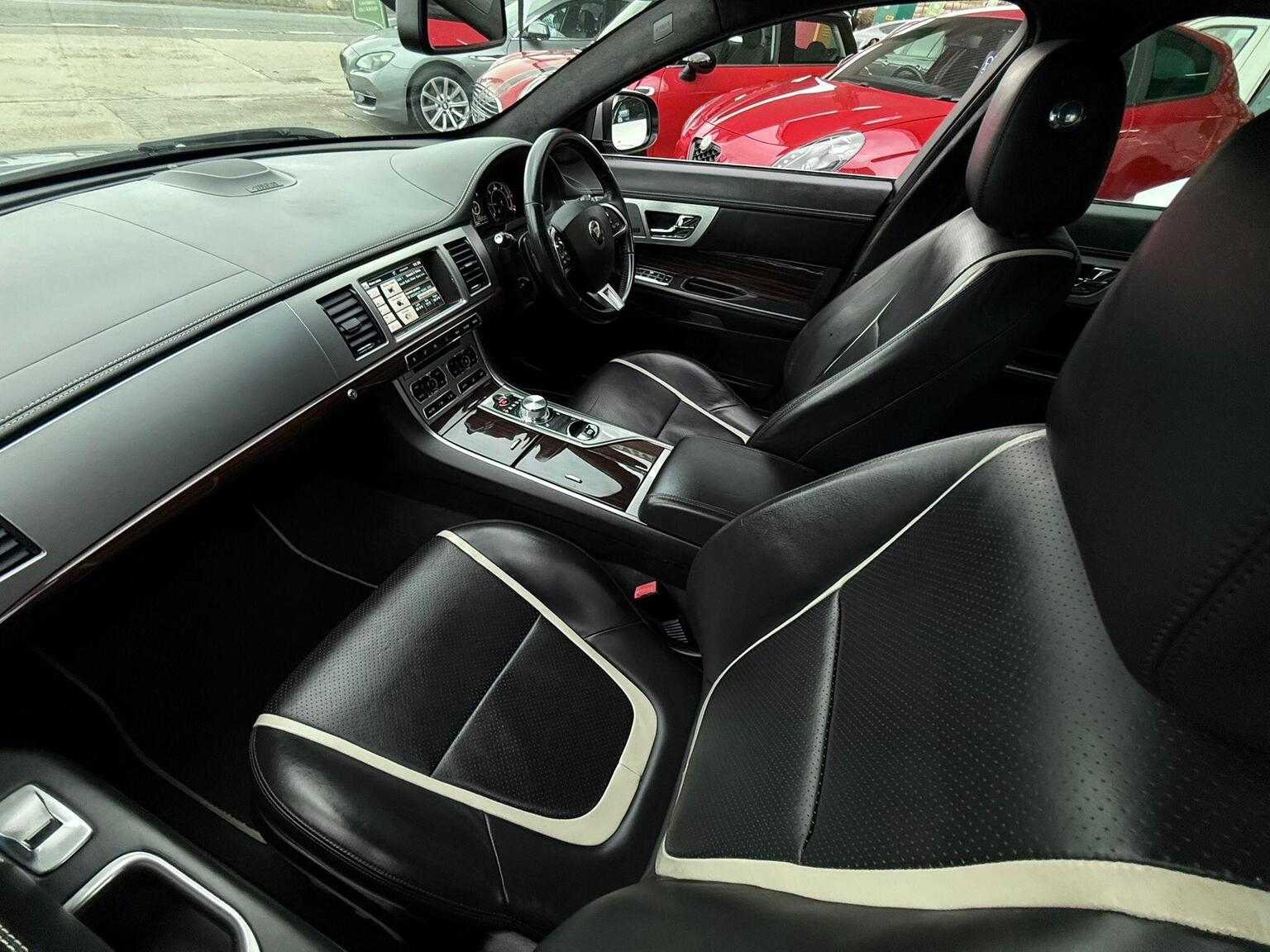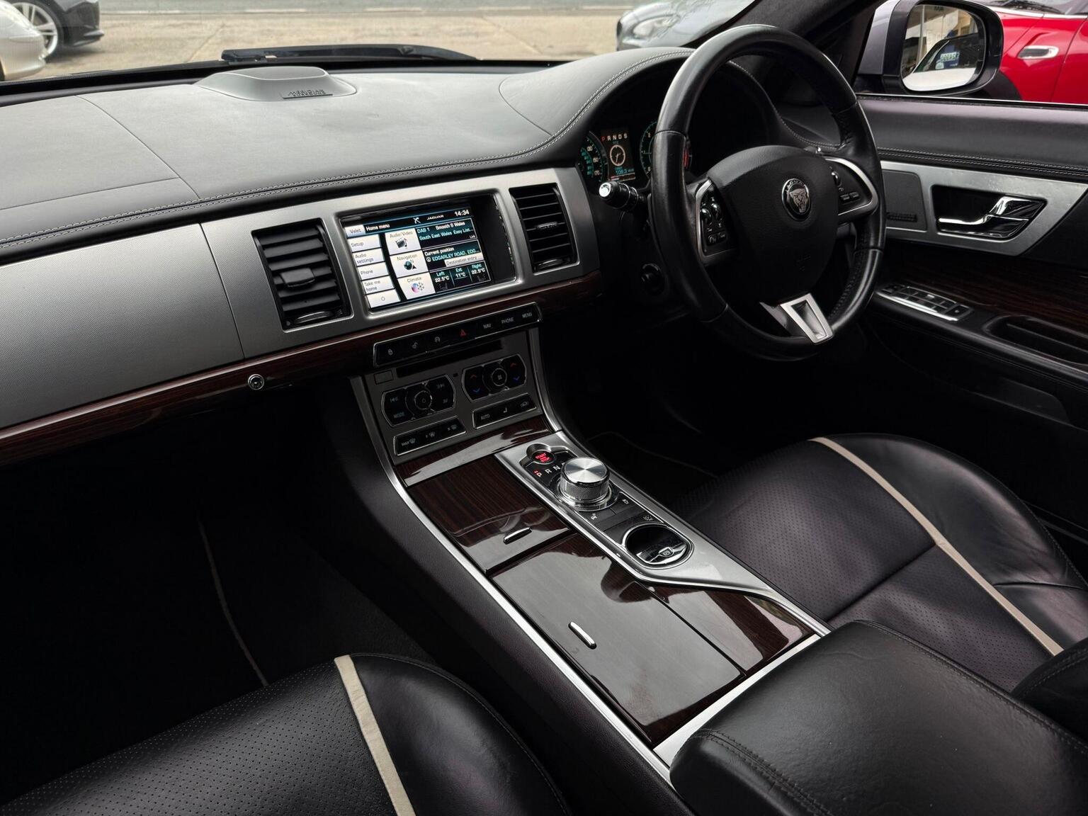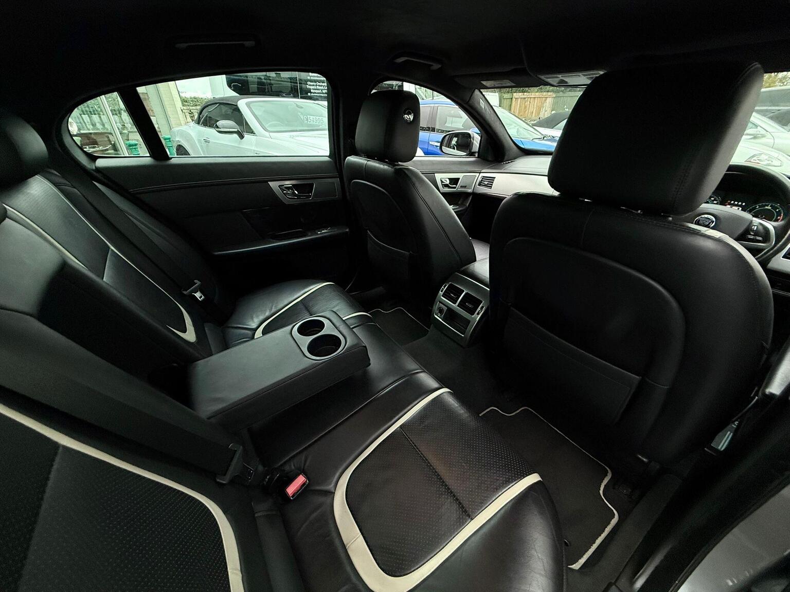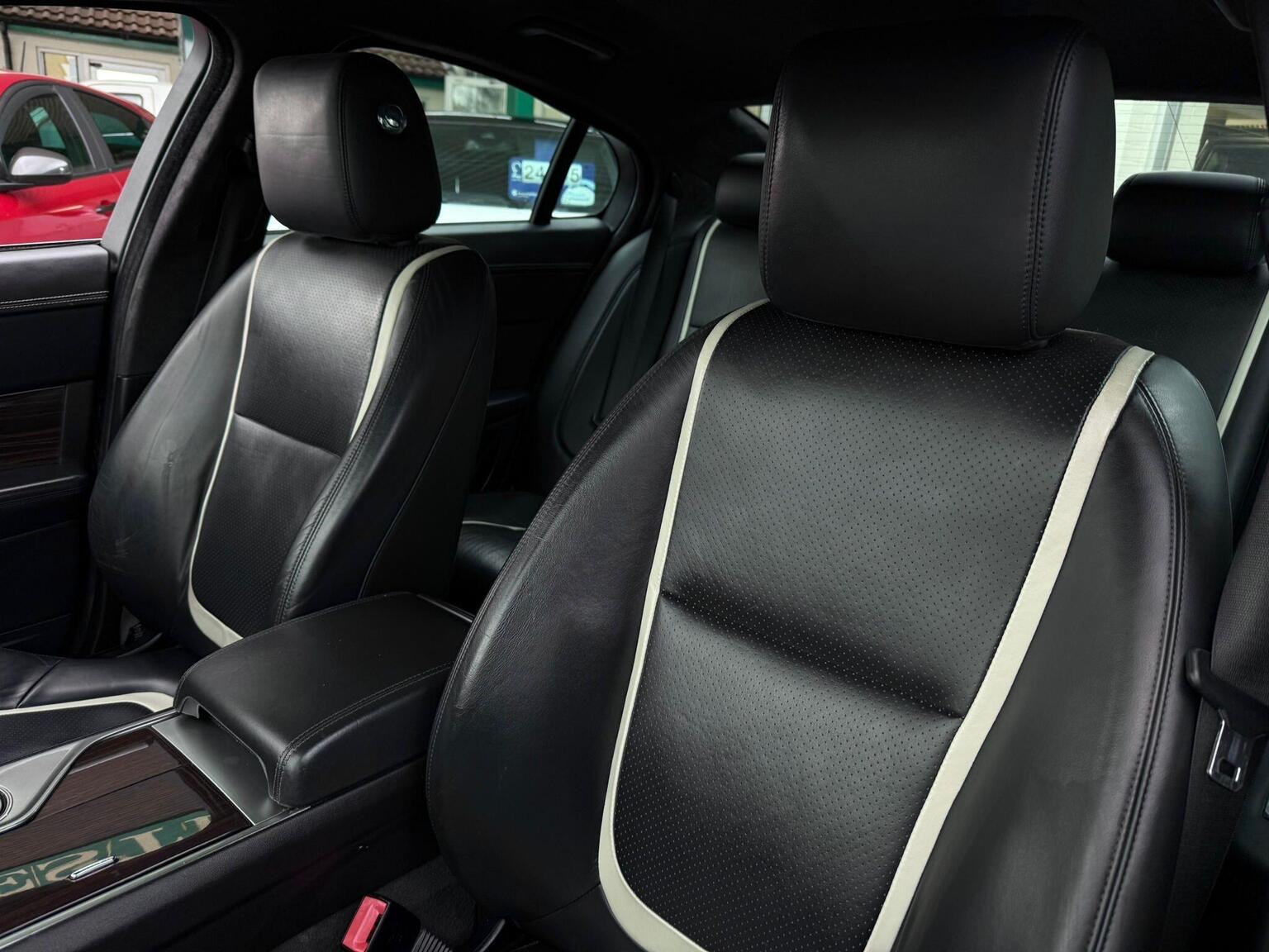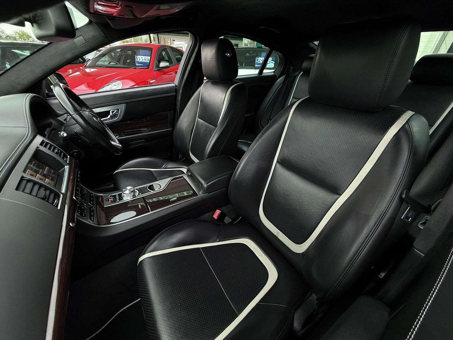 19in Alloy Wheels - Caravela, 3-Flash Lane Change Indicators, 3.5mm Stereo Auxiliary Input Socket, 7in Colour Touch Screen Display, ABS - Anti-locking Braking System, ASL - Automatic Speed Limiter, Acoustic Layer Windshield, Airbags - Driver, Airbags - Front Side, Airbags - Passenger, Airbags - Side Curtain, Approach Illumination - Automatic via Remote, Audio Equipment - Meridian Audio System 380W-Radio-CD-MP3, Auto-Dimming Interior Rear View Mirror, Automatic Headlight On, Automatic Headlight Washers, Auxiliary Heater, Auxiliary Power Point in Rear, Bluetooth Connectivity, Brake Pad Wear Indicator, Chrome Grille with Chrome Surround, Cruise Control, DAB Radio Receiver, Diesel Misfuelling Protection Device, Door Mirrors - Electric Adjustment-Heated-Auto Dimming-Powerfolding-Side Repeaters, Driver Information Centre with Dual Function Trip Computer, Driver and Front Passenger Sun Visors with Illuminated Vanity Mirrors, Driver and Passenger Electric Seat Height Adjustment, Drivers Foot Rest, Dual Zone Automatic Climate Control, EBA - Emergency Brake Assist, EBD - Electronic Brake-Force Distribution, EPB - Electronic Parking Brake - Drive Away Release, Electric Windows, Front Centre Console with Storage Compartment and Twin Cupholders, Front Courtesy Footwell Lights, Front Media Interface, Front Seats - Whiplash Reduction System, Hazard Lights Under Heavy Braking, Head Restraint - Rear Centre, Headlights - Automatic Levelling, Headlights - LED Signature Lights with Daytime Running, Headlights - Xenon, Headlining - Premium Jaguar Suedecloth and Pillar Trims, Heated Rear Window with Timer, ISOFIX Anchor Points for Rear Child Seat, Interior Mood Lighting - Phosphor Blue Halo Illumination, Jaguar Smart Key System with Keyless Entry, Jaguar Tyre Repair System, JaguarDrive Control with Sport and Winter Mode, JaguarDrive Selector, JaguarSense - Overhead Light Console, LED Tail Lights, Passive Suspension, Pedestrian Contact Sensing and Deployable Bonnet, Premium Carpet Mat Set - Front and Rear, Rain Sensing Windscreen Wipers, Rear Coat Hooks, Rear Parking Aid with Touch Screen Visual Indicator, Remote Control Boot Release, Remote Control Central Locking with Dead Locking and Drive-Away Locking, Remote Controls for Audio System, Satellite Navigation, Seats - Electric Driver/Passenger Adjustment - 16x12 Way with Memory, Seats - Front - Back Map Pockets, Seats - Front Heated and Cooled, Seats - Lumbar Support - Driver-Passenger-4 Way Power, Seats - Rear Centre Armrest, Seats - Rear Folding - 60/40 split, Security System, Servotronic Steering, Single Elliptical Tailpipe, Speakers x11 including 1 Subwoofer, Steering Column - Electric Adjustment for Height and Reach with Entry and Exit Tilt-Away, Steering Wheel - 3-Spoke-Leather-Shift Paddles, TFT Message Centre, Tailored Instrument Panel - Soft Grain Leather Stitched with Contrast Stitching, Trac DSC - Dynamic Stability Control with 3 Setting Levels, Traction Control, Twin Cupholders in Rear Seat Centre Armrest, Two Front/One Rear Auxiliary Sockets, Veneer - Figured Ebony, Windscreen - Heated with Timer, XF Badge