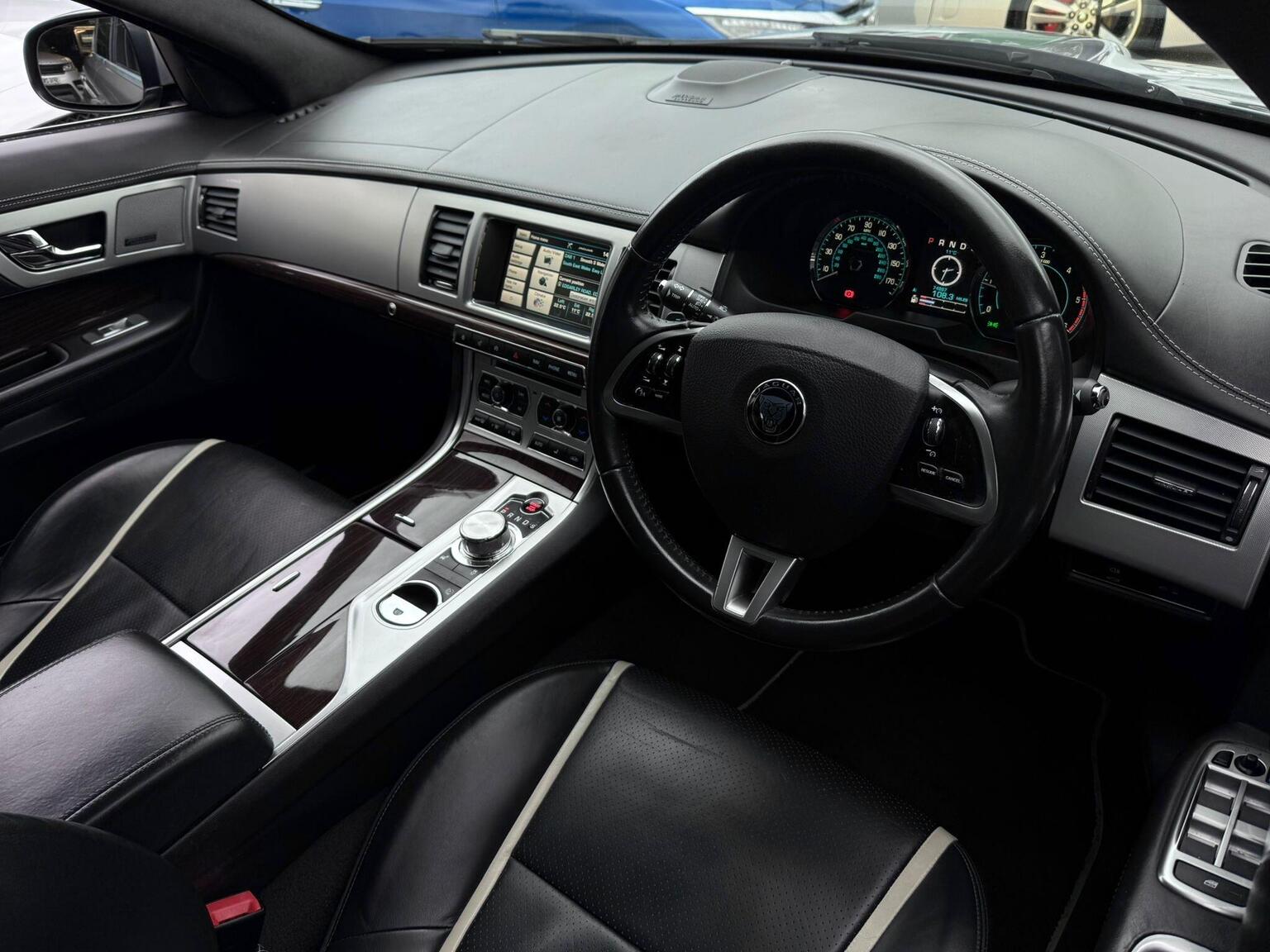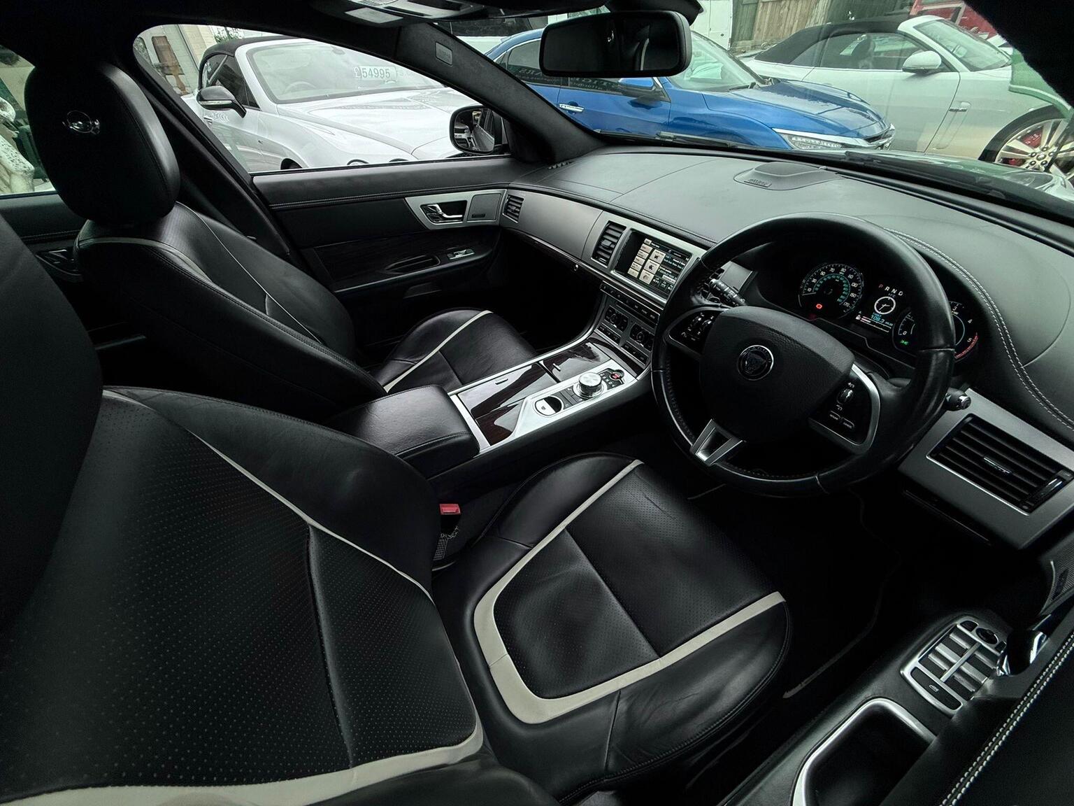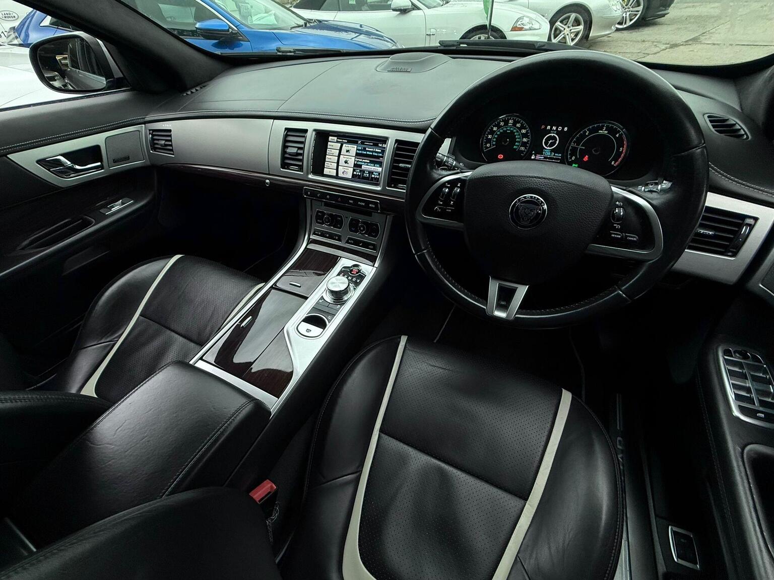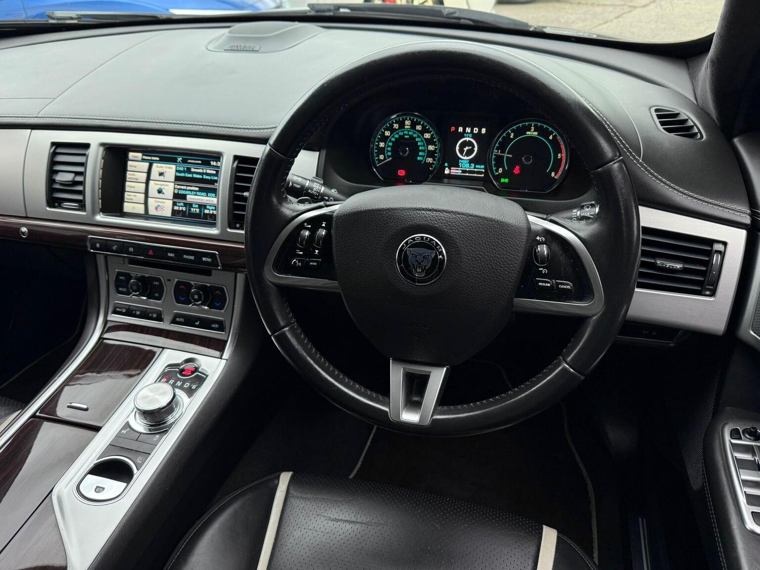 19in Alloy Wheels - Caravela, 3-Flash Lane Change Indicators, 3.5mm Stereo Auxiliary Input Socket, 7in Colour Touch Screen Display, ABS - Anti-locking Braking System, ASL - Automatic Speed Limiter, Acoustic Layer Windshield, Airbags - Driver, Airbags - Front Side, Airbags - Passenger, Airbags - Side Curtain, Approach Illumination - Automatic via Remote, Audio Equipment - Meridian Audio System 380W-Radio-CD-MP3, Auto-Dimming Interior Rear View Mirror, Automatic Headlight On, Automatic Headlight Washers, Auxiliary Heater, Auxiliary Power Point in Rear, Bluetooth Connectivity, Brake Pad Wear Indicator, Chrome Grille with Chrome Surround, Cruise Control, DAB Radio Receiver, Diesel Misfuelling Protection Device, Door Mirrors - Electric Adjustment-Heated-Auto Dimming-Powerfolding-Side Repeaters, Driver Information Centre with Dual Function Trip Computer, Driver and Front Passenger Sun Visors with Illuminated Vanity Mirrors, Driver and Passenger Electric Seat Height Adjustment, Drivers Foot Rest, Dual Zone Automatic Climate Control, EBA - Emergency Brake Assist, EBD - Electronic Brake-Force Distribution, EPB - Electronic Parking Brake - Drive Away Release, Electric Windows, Front Centre Console with Storage Compartment and Twin Cupholders, Front Courtesy Footwell Lights, Front Media Interface, Front Seats - Whiplash Reduction System, Hazard Lights Under Heavy Braking, Head Restraint - Rear Centre, Headlights - Automatic Levelling, Headlights - LED Signature Lights with Daytime Running, Headlights - Xenon, Headlining - Premium Jaguar Suedecloth and Pillar Trims, Heated Rear Window with Timer, ISOFIX Anchor Points for Rear Child Seat, Interior Mood Lighting - Phosphor Blue Halo Illumination, Jaguar Smart Key System with Keyless Entry, Jaguar Tyre Repair System, JaguarDrive Control with Sport and Winter Mode, JaguarDrive Selector, JaguarSense - Overhead Light Console, LED Tail Lights, Passive Suspension, Pedestrian Contact Sensing and Deployable Bonnet, Premium Carpet Mat Set - Front and Rear, Rain Sensing Windscreen Wipers, Rear Coat Hooks, Rear Parking Aid with Touch Screen Visual Indicator, Remote Control Boot Release, Remote Control Central Locking with Dead Locking and Drive-Away Locking, Remote Controls for Audio System, Satellite Navigation, Seats - Electric Driver/Passenger Adjustment - 16x12 Way with Memory, Seats - Front - Back Map Pockets, Seats - Front Heated and Cooled, Seats - Lumbar Support - Driver-Passenger-4 Way Power, Seats - Rear Centre Armrest, Seats - Rear Folding - 60/40 split, Security System, Servotronic Steering, Single Elliptical Tailpipe, Speakers x11 including 1 Subwoofer, Steering Column - Electric Adjustment for Height and Reach with Entry and Exit Tilt-Away, Steering Wheel - 3-Spoke-Leather-Shift Paddles, TFT Message Centre, Tailored Instrument Panel - Soft Grain Leather Stitched with Contrast Stitching, Trac DSC - Dynamic Stability Control with 3 Setting Levels, Traction Control, Twin Cupholders in Rear Seat Centre Armrest, Two Front/One Rear Auxiliary Sockets, Veneer - Figured Ebony, Windscreen - Heated with Timer, XF Badge