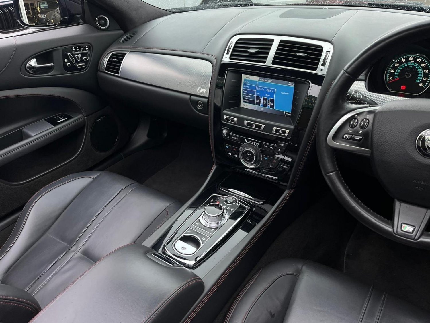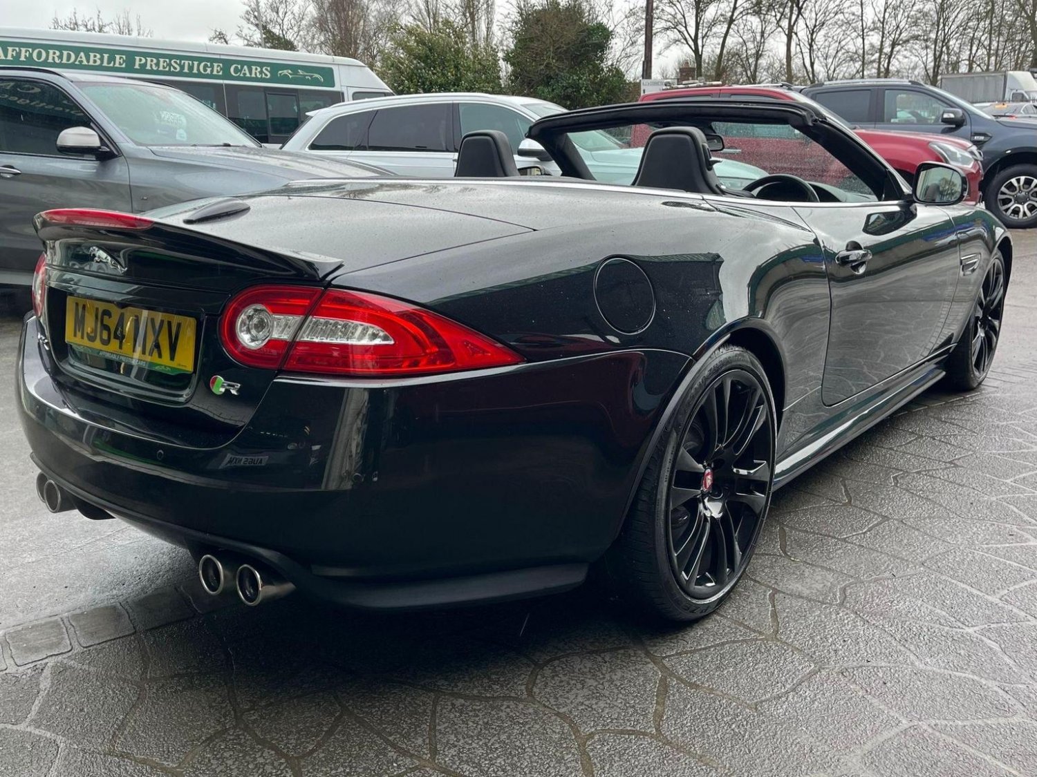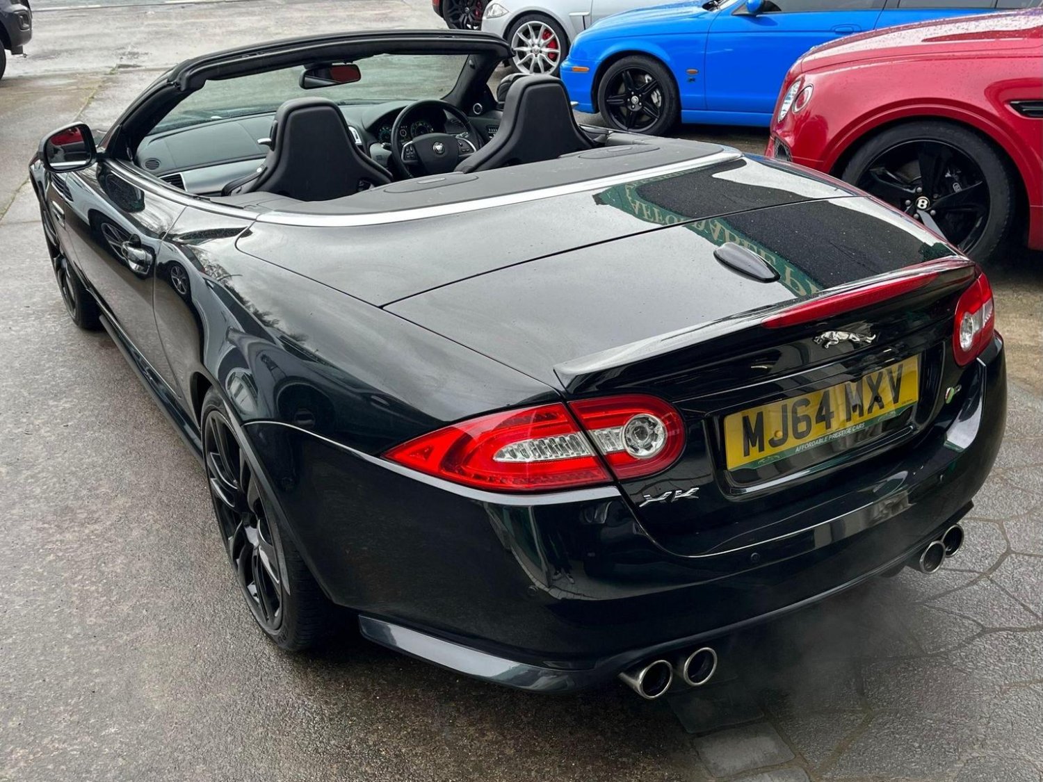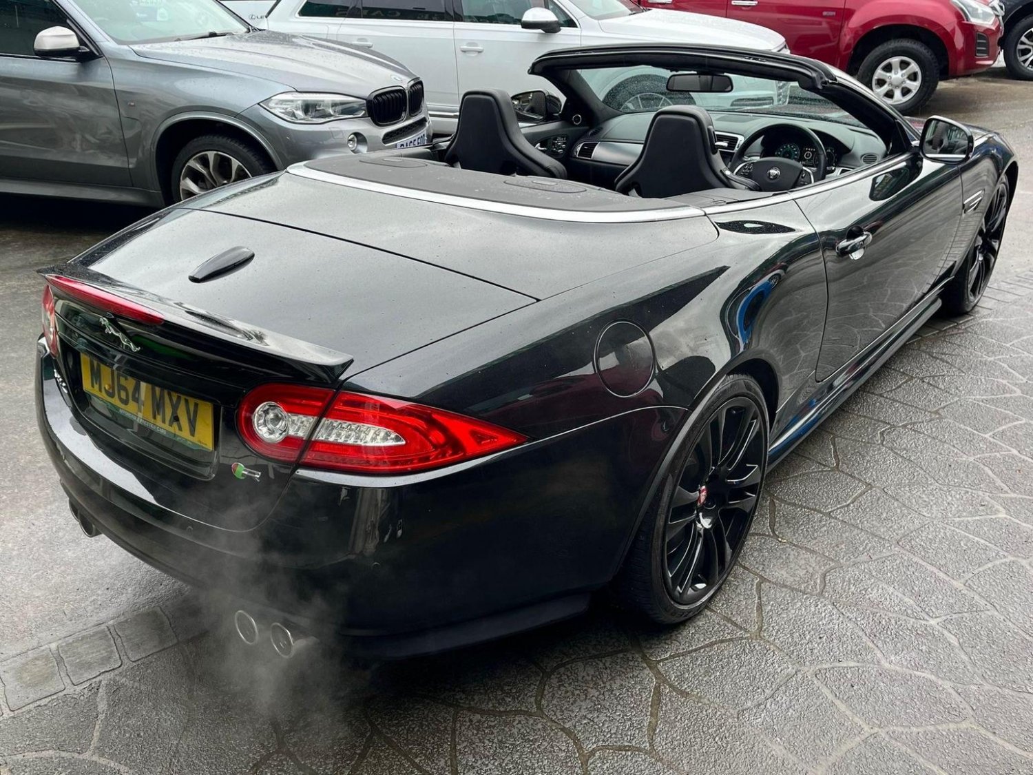 20in Alloy Wheels - Vortex, 7in Colour Touch Screen Display, ABS - Anti-locking Braking System, Accessory Powerpoint in Glovebox, Active Differential Control, Adaptive Dynamics, Adaptive Restraint Technology System, Air Particle and Odour Filtration, Airbags - Driver, Airbags - Front Side, Airbags - Passenger, Ashtray and Lighter, Audio Connectivity Module - USB, Automatic Headlight Washers, Auxiliary Power Sockets, Bluetooth Telephone Connectivity, Bowers and Wilkins 525W Surround Sound System, Bright Stainless Steel Pedals, Convertible Roof - Full Electric Black, Cruise Control, DAB Radio Receiver, Dark Mesh Aluminium, Daytime Running Lights - LED, Dual Zone Automatic Climate Control, EBA - Emergency Brake Assist, EBD - Electronic Brake-Force Distribution, EPB - Electronic Parking Brake - Drive Away Release, Electric Windows, Exterior Mirrors - Power Foldback-Electrochromic-Heated-Memory with Integrated LED Lights, Front Bumper - Black Outboard Bezel and Black Mesh Inserts, Front Parking Aid, Headlights - Automatic Levelling, Headlights - Bi-Function HID Xenon with LED Daytime Running Lights, Heated Front Seats, Heated Front Windscreen, Heated Steering Wheel, Humidity Control, ISOFIX Rear, Interior Rear View Mirror - Electrochromic, Jaguar High Performance Braking System, Jaguar Sequential Shift - Steering Wheel One Touch Paddles, Jaguar Smart Key System with Keyless Entry, Jaguar Smart Key System with Keyless Start, Jaguar Tyre Repair System, JaguarDrive Control with Winter Mode and Dynamic Mode, LED Tail Lights, Louvered Bonnet with Supercharged Script, Navigation with Route Guidence with Traffic Messaging Channel, Open Differential, Pedestrian Contact Sensing and Deployable Bonnet, Performance Active Exhaust - Quad Tailpipes, Perimeter Sensing and Sounder, Phosphor Blue Halo Illumintion including Mood Lighting, Power Assisted Steering, Premium Carpet Mats - Nubuck Edged with Jaguar Script, Premium Headlining - Suedecloth Jet, Rain Sensing Windscreen Wipers, Rear Parking Aid with Touch Screen Visual Indicator, Rear Spoiler - Body Coloured, Red Painted Brake Calipers with Jaguar Script, Remote Control Central Locking with Dead Locking and Drive-Away Locking, Roll-Over Protection System, Seats - Diamond Stitch Style Performance, Seats - Lumbar Support - Driver-Passenger-4 Way Power, Seats - Memory Function with 3 Settings - Exterior Mirrors and Steering Column, Seats - Performance 16x16 Way Electric, Single Slot CD Player, Steering Wheel - 3-Spoke-Leather, Telephone Pre-Wiring with Universal Connector, Trac DSC - Dynamic Stability Control with 3 Setting Levels, Trip Computer, Twin Front Cupholders, Valet Mode - Lockable Trunk - Stowage - Glove Box, Vehicle Immobiliser, Volumetric Sensing, Window Surrounds - Gloss Black Finish, Windows Media Audio and MP3 Compatibility