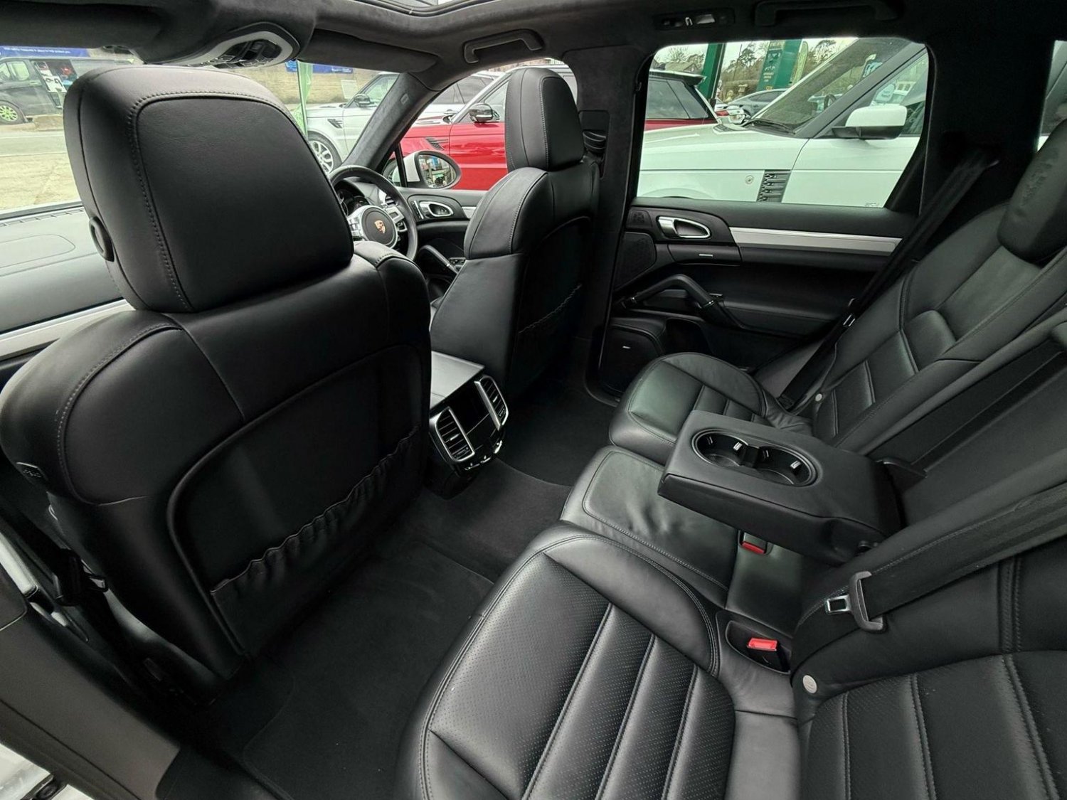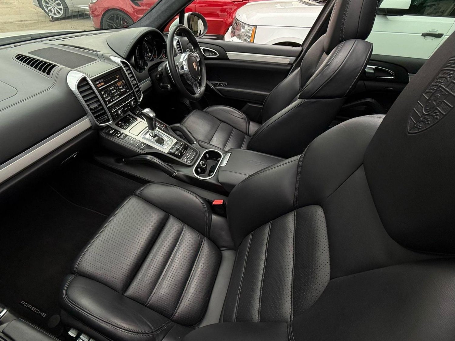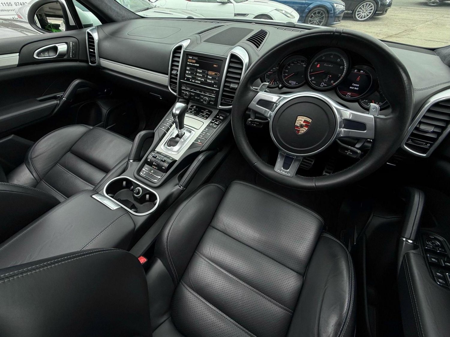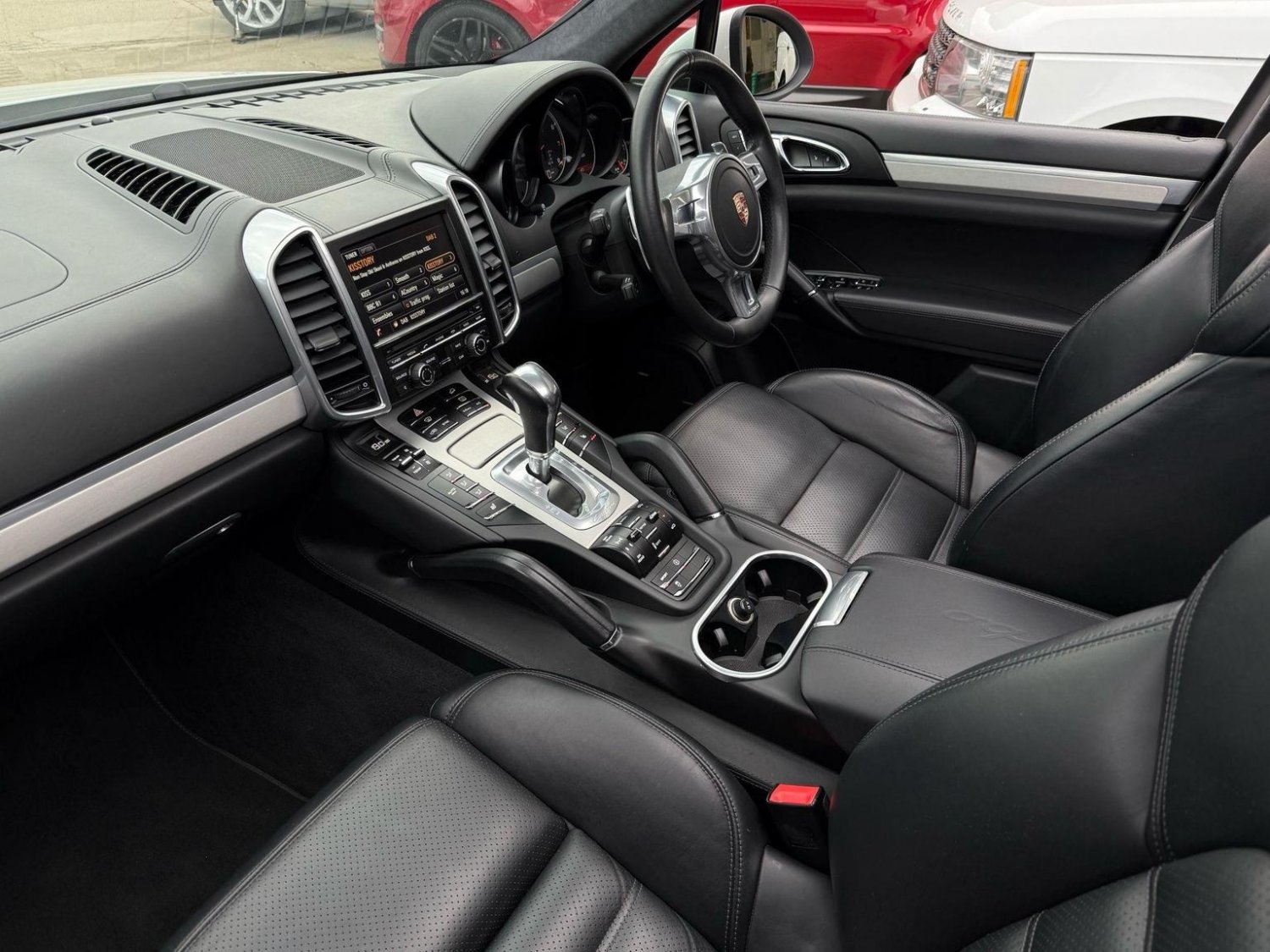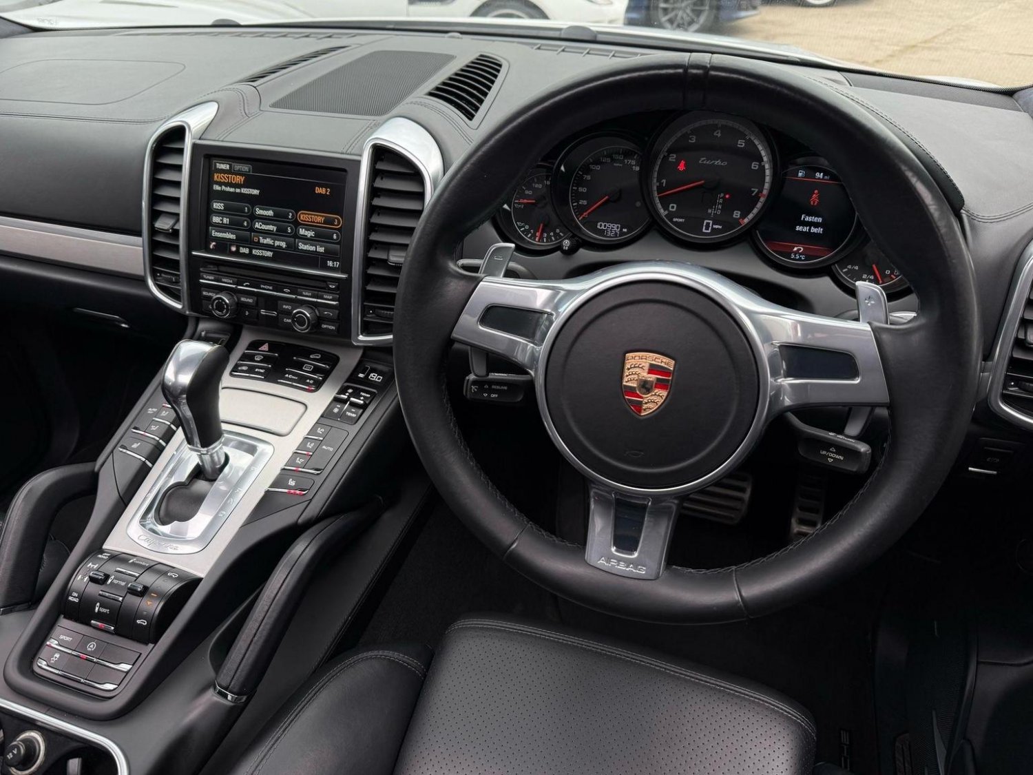 19in Alloy Wheels - Cayenne Turbo, 2 Integrated Cupholders in Front and Rear with Variable Diameter, 2x Front 12v Sockets, 3 Point Automatic Seat Belt on Centre Rear Seat with Pre-Tensioners on Front and Outer Rear Seats, 585 Watt Output Power, ABD - Automatic Brake Differential, ABS - Anti-lock Brake System, ASR - Anti Slip Regulation, Air Suspension with Self-Levelling and Height Adjustment incl Porsche Active Suspension Management, Airbag - Driver, Airbag - Passenger, Analogue Indications for Oil Temperature Oil Pressure Cooling-Water Temperature and Fuel-Level, Armrest - Folding Centre with Cupholders, Ashtray Illumination, Auto-Hold Function, Automatically Dimming Exterior and Interior Mirrors, BOSE Surround Sound System, Bottle Holder in Front and Rear Door Bins, Brake Calipers - Red, Bumper System Comprising High-Strength Cross Members and Two Deformation Elements, Central Locking with Remote Control, Cruise Control, Curtain Airbags Covering Roof Frame and All Side Windows from A to C Pillar - Left and Right, Daytime Running Lights - LED, Digital Boost-Pressure Indicator in TFT Colour Display in Instrument Cluster for Cayenne Turbo, Dimmable Inside Door Handle Illumination, Door Entry Guards in Stainless Steel with Model Designation in Front, Door Handles Painted in Exterior Colour, Door Mirrors - Electrically Adjustable and Heated, Door Storage Bins, Double Driver and Passenger Sun Visors, Electric Parking Brake, Electric Windows - Front Lift with One Touch Operation and Electrically Operated Rear Side Windows, Electronic Immobiliser - Transponder System, Emphasis Rails Silver-Coloured, Exterior Mirrors with Power Folding Facility - via Remote Key - Aspherical on Drivers Side, Extra Distinctive Power Dome on Engine Lid, Fins of the Side Air Intakes Painted in Black, Folding Front Centre Armrest - with Fore-Aft Adjustment, Four Doors with Side-Impact Protection Beams, Front Apron with Integrated Air Inlets, Front Wiper System with 2 Wiper Speeds - Intermittent Wipe Rain Sensor and Heated Washer Nozzles, Front-Rear Foot Well Illuminiation, Gear Indicator for Tiptronic S - Service Interval Indicator - Ambient Temperature Display, Glove Compartment Cooled Via AC System, Glove Compartment Illumination, Headlight Assistant, High Resolution 7in WVGA Wide Video Graphics Array TFT Colour Display, High-level Third Brake Light - LED Integrated into Roof Spoiler, ISOFIX Anchors for Child Seat on Left and Right Rear Seat, Ignition Switch and Centre Console Storage Illumination, Instrument Cluster with High-resolution 4.8in TFT Colour Display, Instruments with Black Dial Faces and Turbo Logo, Integrated Fog Lights in Lower Front Moulding, Integrated Multi-Antenna System in Rear Spoiler and Screen - Antenna Diversity, Integrated Side Airbags in Both Front Seats, Interior Lighting Reading Spots - Front and Rear, Interior Trim - Brushed Aluminium Finish, LED Rear Lights and Adaptive Brake Lights, MSR - Motor Slip Regulation, Manual Belt Height Adjustment for Driver and Front Passenger, Matt Silver Single-Tube Tailpipes - Right and Left, Non-Smoker Package, On-Board Computer, PASM - Porsche Active Suspension Management inc PDCC, PCM - Porsche Communication Management - Include Navigation, PORSCHE Logotype and Model Designation on Rear Lid in Chrome Look, PSM - Porsche Stability Management, PTM - Porsche Traction Management, Pad-Wear Sensors on Each Brake Pad, Park Assist - Front and Rear with Acoustic and Optic Indication of Distance, Park Assist - Rear, Particle-Pollen Filter with Activated Charcoal Canister, Pedal Caps in Stainless Steel, Pockets on Front Seat Backrest and One Inside Wall of Luggage Compartment, Porsche Hill Control - PHC, Power-Assisted Steering, Preparation for Towbar System, Pull-Out Loadspace Cover in Detachable Cassette, Radio - Twin RDS Tuner and Single CD-DVD Drive, Rear Window Heating with Auto-Off Function, Rear Wiper System with Intermittent Wipe and Integrated Washer Nozzle, Rollover Detection System Enabling Early Deployment of Curtain Airbags and Seat Belt Pretensioners, Roof Lining in Alcantara, Seatbelt Reminder for Drive and Front Passenger Seat, Separate Front End Auxiliary Lights with Position Light and Turn Signals in LED, Speakers x11, Speakers x14, Split-Folding Rear Seats - 40-20-40, Steering Wheel - Electric Height and Fore-Aft Adjustment, Steering Wheel - Trimmed with Smooth Leather, Storage Bin in Centre Console with Box for Cordless Telephone Handset, Sunvisors with Lighted Make-Up Mirrors - Driver Side and Passenger Side, Tinted Glass All Round with Grey Top Tint on Windscreen, Top-Hinged Tailgate with Integrated Rear Spoiler, Two-Stage Locking Alarm System with Ultrasonic Interior Surveillance, Two-Way Adjustable Head Restraints Fixed on Central Rear Seat, Tyre Pressure Monitoring - TPM, Tyre Repair Sealant and Electric Air Compressor