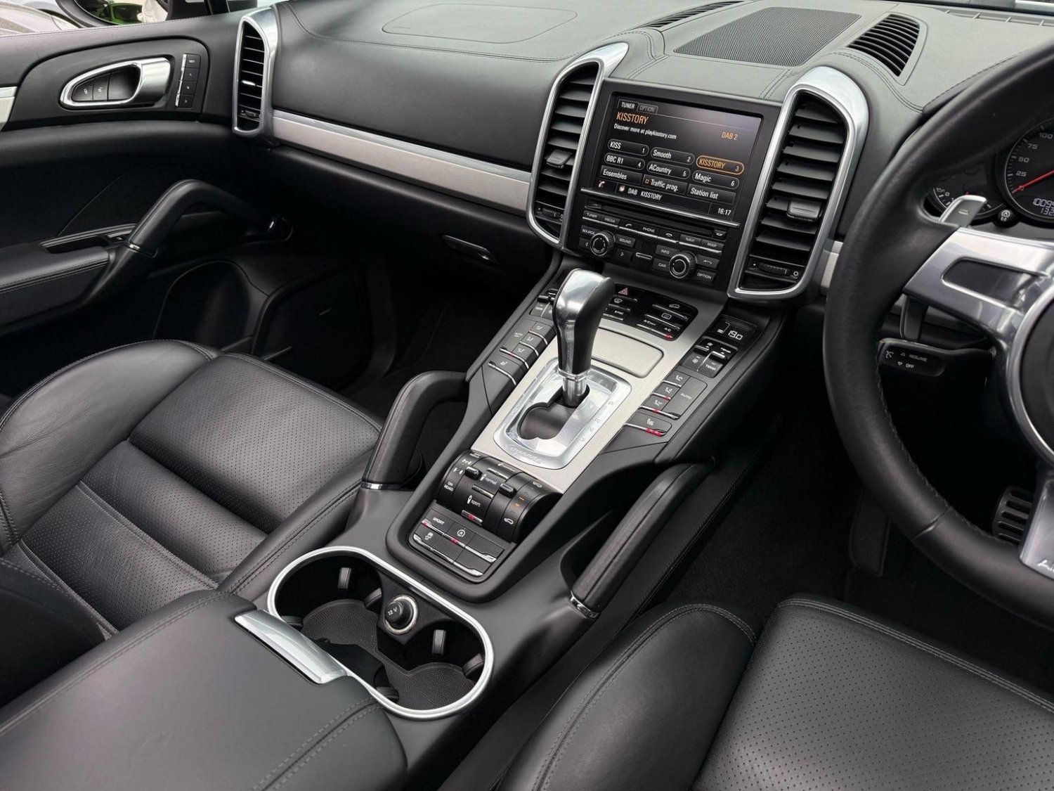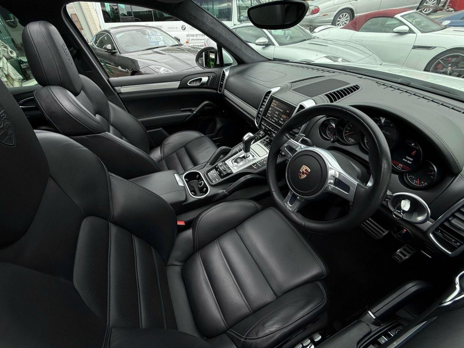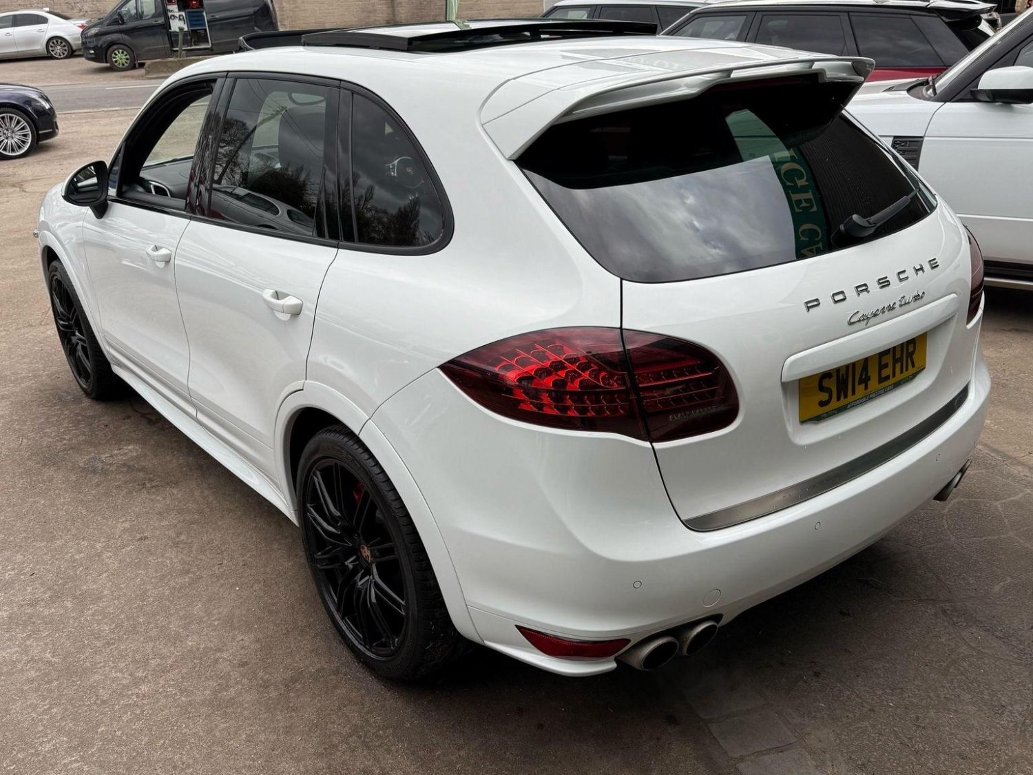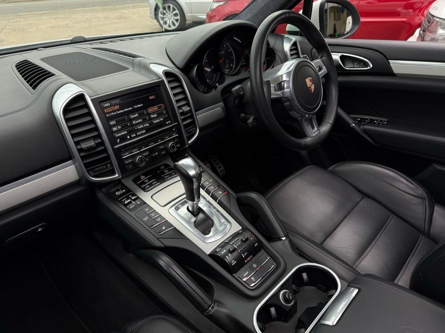 19in Alloy Wheels - Cayenne Turbo, 2 Integrated Cupholders in Front and Rear with Variable Diameter, 2x Front 12v Sockets, 3 Point Automatic Seat Belt on Centre Rear Seat with Pre-Tensioners on Front and Outer Rear Seats, 585 Watt Output Power, ABD - Automatic Brake Differential, ABS - Anti-lock Brake System, ASR - Anti Slip Regulation, Air Suspension with Self-Levelling and Height Adjustment incl Porsche Active Suspension Management, Airbag - Driver, Airbag - Passenger, Analogue Indications for Oil Temperature Oil Pressure Cooling-Water Temperature and Fuel-Level, Armrest - Folding Centre with Cupholders, Ashtray Illumination, Auto-Hold Function, Automatically Dimming Exterior and Interior Mirrors, BOSE Surround Sound System, Bottle Holder in Front and Rear Door Bins, Brake Calipers - Red, Bumper System Comprising High-Strength Cross Members and Two Deformation Elements, Central Locking with Remote Control, Cruise Control, Curtain Airbags Covering Roof Frame and All Side Windows from A to C Pillar - Left and Right, Daytime Running Lights - LED, Digital Boost-Pressure Indicator in TFT Colour Display in Instrument Cluster for Cayenne Turbo, Dimmable Inside Door Handle Illumination, Door Entry Guards in Stainless Steel with Model Designation in Front, Door Handles Painted in Exterior Colour, Door Mirrors - Electrically Adjustable and Heated, Door Storage Bins, Double Driver and Passenger Sun Visors, Electric Parking Brake, Electric Windows - Front Lift with One Touch Operation and Electrically Operated Rear Side Windows, Electronic Immobiliser - Transponder System, Emphasis Rails Silver-Coloured, Exterior Mirrors with Power Folding Facility - via Remote Key - Aspherical on Drivers Side, Extra Distinctive Power Dome on Engine Lid, Fins of the Side Air Intakes Painted in Black, Folding Front Centre Armrest - with Fore-Aft Adjustment, Four Doors with Side-Impact Protection Beams, Front Apron with Integrated Air Inlets, Front Wiper System with 2 Wiper Speeds - Intermittent Wipe Rain Sensor and Heated Washer Nozzles, Front-Rear Foot Well Illuminiation, Gear Indicator for Tiptronic S - Service Interval Indicator - Ambient Temperature Display, Glove Compartment Cooled Via AC System, Glove Compartment Illumination, Headlight Assistant, High Resolution 7in WVGA Wide Video Graphics Array TFT Colour Display, High-level Third Brake Light - LED Integrated into Roof Spoiler, ISOFIX Anchors for Child Seat on Left and Right Rear Seat, Ignition Switch and Centre Console Storage Illumination, Instrument Cluster with High-resolution 4.8in TFT Colour Display, Instruments with Black Dial Faces and Turbo Logo, Integrated Fog Lights in Lower Front Moulding, Integrated Multi-Antenna System in Rear Spoiler and Screen - Antenna Diversity, Integrated Side Airbags in Both Front Seats, Interior Lighting Reading Spots - Front and Rear, Interior Trim - Brushed Aluminium Finish, LED Rear Lights and Adaptive Brake Lights, MSR - Motor Slip Regulation, Manual Belt Height Adjustment for Driver and Front Passenger, Matt Silver Single-Tube Tailpipes - Right and Left, Non-Smoker Package, On-Board Computer, PASM - Porsche Active Suspension Management inc PDCC, PCM - Porsche Communication Management - Include Navigation, PORSCHE Logotype and Model Designation on Rear Lid in Chrome Look, PSM - Porsche Stability Management, PTM - Porsche Traction Management, Pad-Wear Sensors on Each Brake Pad, Park Assist - Front and Rear with Acoustic and Optic Indication of Distance, Park Assist - Rear, Particle-Pollen Filter with Activated Charcoal Canister, Pedal Caps in Stainless Steel, Pockets on Front Seat Backrest and One Inside Wall of Luggage Compartment, Porsche Hill Control - PHC, Power-Assisted Steering, Preparation for Towbar System, Pull-Out Loadspace Cover in Detachable Cassette, Radio - Twin RDS Tuner and Single CD-DVD Drive, Rear Window Heating with Auto-Off Function, Rear Wiper System with Intermittent Wipe and Integrated Washer Nozzle, Rollover Detection System Enabling Early Deployment of Curtain Airbags and Seat Belt Pretensioners, Roof Lining in Alcantara, Seatbelt Reminder for Drive and Front Passenger Seat, Separate Front End Auxiliary Lights with Position Light and Turn Signals in LED, Speakers x11, Speakers x14, Split-Folding Rear Seats - 40-20-40, Steering Wheel - Electric Height and Fore-Aft Adjustment, Steering Wheel - Trimmed with Smooth Leather, Storage Bin in Centre Console with Box for Cordless Telephone Handset, Sunvisors with Lighted Make-Up Mirrors - Driver Side and Passenger Side, Tinted Glass All Round with Grey Top Tint on Windscreen, Top-Hinged Tailgate with Integrated Rear Spoiler, Two-Stage Locking Alarm System with Ultrasonic Interior Surveillance, Two-Way Adjustable Head Restraints Fixed on Central Rear Seat, Tyre Pressure Monitoring - TPM, Tyre Repair Sealant and Electric Air Compressor