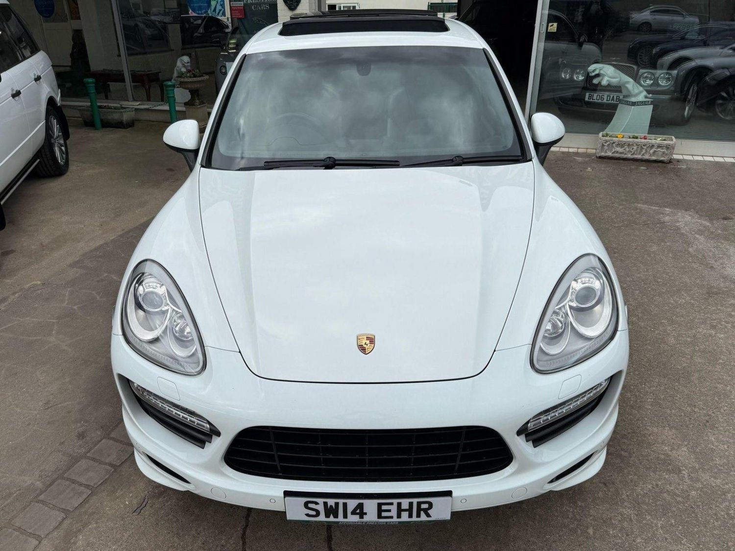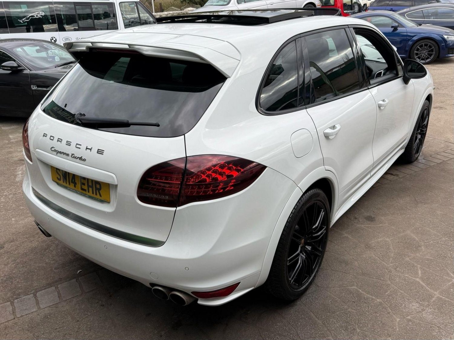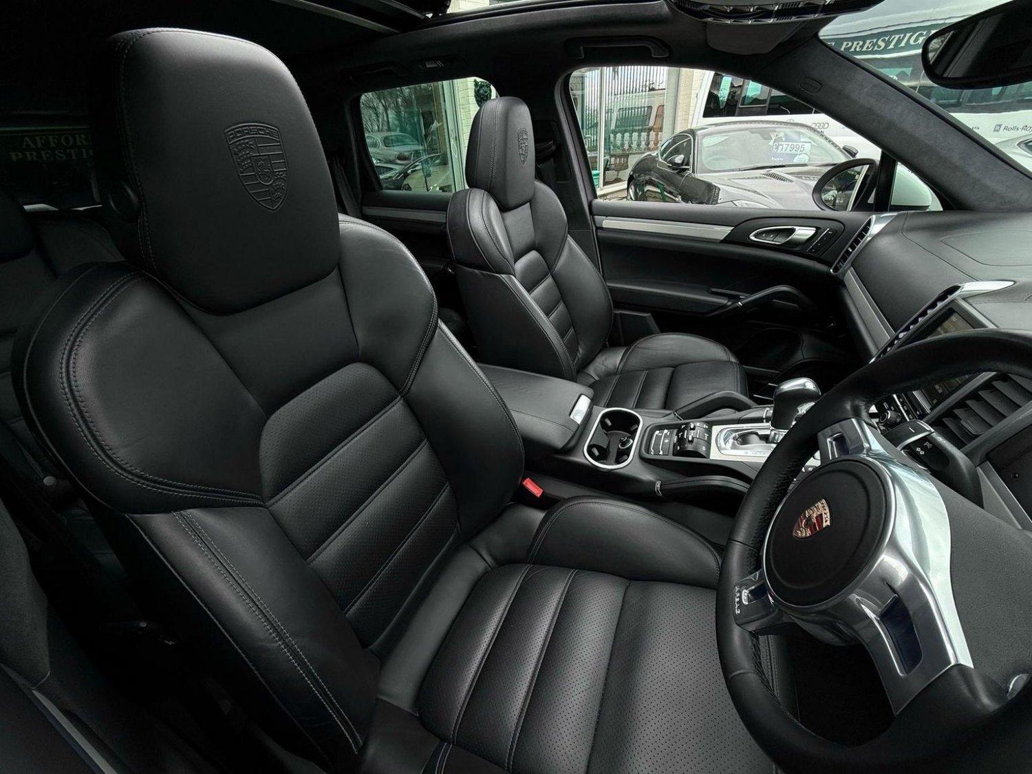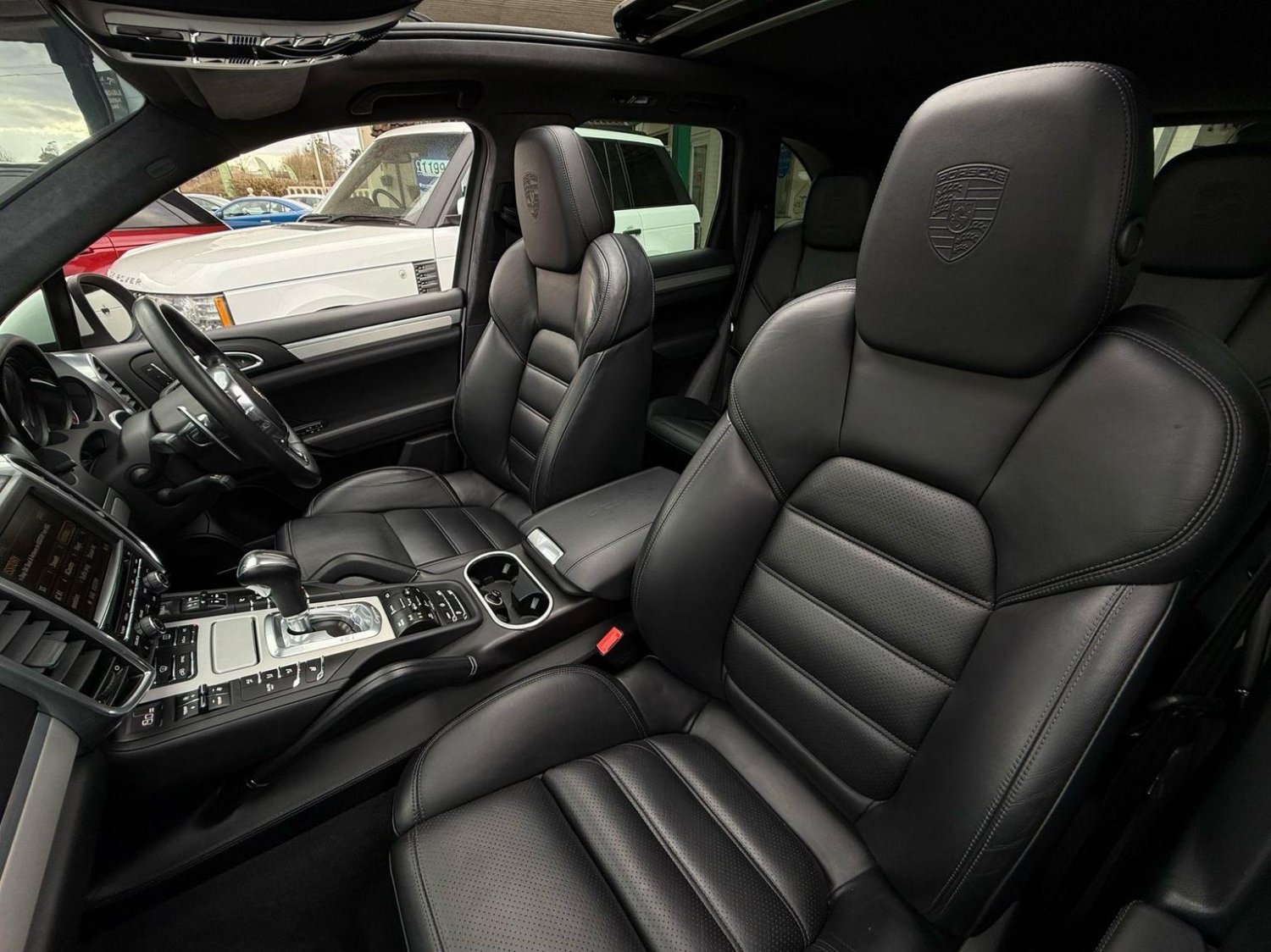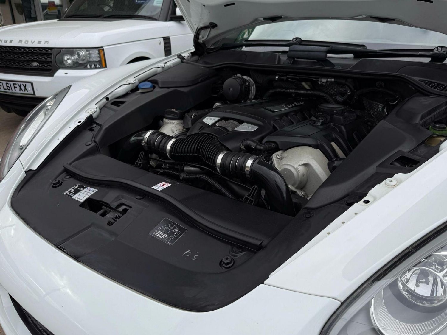 19in Alloy Wheels - Cayenne Turbo, 2 Integrated Cupholders in Front and Rear with Variable Diameter, 2x Front 12v Sockets, 3 Point Automatic Seat Belt on Centre Rear Seat with Pre-Tensioners on Front and Outer Rear Seats, 585 Watt Output Power, ABD - Automatic Brake Differential, ABS - Anti-lock Brake System, ASR - Anti Slip Regulation, Air Suspension with Self-Levelling and Height Adjustment incl Porsche Active Suspension Management, Airbag - Driver, Airbag - Passenger, Analogue Indications for Oil Temperature Oil Pressure Cooling-Water Temperature and Fuel-Level, Armrest - Folding Centre with Cupholders, Ashtray Illumination, Auto-Hold Function, Automatically Dimming Exterior and Interior Mirrors, BOSE Surround Sound System, Bottle Holder in Front and Rear Door Bins, Brake Calipers - Red, Bumper System Comprising High-Strength Cross Members and Two Deformation Elements, Central Locking with Remote Control, Cruise Control, Curtain Airbags Covering Roof Frame and All Side Windows from A to C Pillar - Left and Right, Daytime Running Lights - LED, Digital Boost-Pressure Indicator in TFT Colour Display in Instrument Cluster for Cayenne Turbo, Dimmable Inside Door Handle Illumination, Door Entry Guards in Stainless Steel with Model Designation in Front, Door Handles Painted in Exterior Colour, Door Mirrors - Electrically Adjustable and Heated, Door Storage Bins, Double Driver and Passenger Sun Visors, Electric Parking Brake, Electric Windows - Front Lift with One Touch Operation and Electrically Operated Rear Side Windows, Electronic Immobiliser - Transponder System, Emphasis Rails Silver-Coloured, Exterior Mirrors with Power Folding Facility - via Remote Key - Aspherical on Drivers Side, Extra Distinctive Power Dome on Engine Lid, Fins of the Side Air Intakes Painted in Black, Folding Front Centre Armrest - with Fore-Aft Adjustment, Four Doors with Side-Impact Protection Beams, Front Apron with Integrated Air Inlets, Front Wiper System with 2 Wiper Speeds - Intermittent Wipe Rain Sensor and Heated Washer Nozzles, Front-Rear Foot Well Illuminiation, Gear Indicator for Tiptronic S - Service Interval Indicator - Ambient Temperature Display, Glove Compartment Cooled Via AC System, Glove Compartment Illumination, Headlight Assistant, High Resolution 7in WVGA Wide Video Graphics Array TFT Colour Display, High-level Third Brake Light - LED Integrated into Roof Spoiler, ISOFIX Anchors for Child Seat on Left and Right Rear Seat, Ignition Switch and Centre Console Storage Illumination, Instrument Cluster with High-resolution 4.8in TFT Colour Display, Instruments with Black Dial Faces and Turbo Logo, Integrated Fog Lights in Lower Front Moulding, Integrated Multi-Antenna System in Rear Spoiler and Screen - Antenna Diversity, Integrated Side Airbags in Both Front Seats, Interior Lighting Reading Spots - Front and Rear, Interior Trim - Brushed Aluminium Finish, LED Rear Lights and Adaptive Brake Lights, MSR - Motor Slip Regulation, Manual Belt Height Adjustment for Driver and Front Passenger, Matt Silver Single-Tube Tailpipes - Right and Left, Non-Smoker Package, On-Board Computer, PASM - Porsche Active Suspension Management inc PDCC, PCM - Porsche Communication Management - Include Navigation, PORSCHE Logotype and Model Designation on Rear Lid in Chrome Look, PSM - Porsche Stability Management, PTM - Porsche Traction Management, Pad-Wear Sensors on Each Brake Pad, Park Assist - Front and Rear with Acoustic and Optic Indication of Distance, Park Assist - Rear, Particle-Pollen Filter with Activated Charcoal Canister, Pedal Caps in Stainless Steel, Pockets on Front Seat Backrest and One Inside Wall of Luggage Compartment, Porsche Hill Control - PHC, Power-Assisted Steering, Preparation for Towbar System, Pull-Out Loadspace Cover in Detachable Cassette, Radio - Twin RDS Tuner and Single CD-DVD Drive, Rear Window Heating with Auto-Off Function, Rear Wiper System with Intermittent Wipe and Integrated Washer Nozzle, Rollover Detection System Enabling Early Deployment of Curtain Airbags and Seat Belt Pretensioners, Roof Lining in Alcantara, Seatbelt Reminder for Drive and Front Passenger Seat, Separate Front End Auxiliary Lights with Position Light and Turn Signals in LED, Speakers x11, Speakers x14, Split-Folding Rear Seats - 40-20-40, Steering Wheel - Electric Height and Fore-Aft Adjustment, Steering Wheel - Trimmed with Smooth Leather, Storage Bin in Centre Console with Box for Cordless Telephone Handset, Sunvisors with Lighted Make-Up Mirrors - Driver Side and Passenger Side, Tinted Glass All Round with Grey Top Tint on Windscreen, Top-Hinged Tailgate with Integrated Rear Spoiler, Two-Stage Locking Alarm System with Ultrasonic Interior Surveillance, Two-Way Adjustable Head Restraints Fixed on Central Rear Seat, Tyre Pressure Monitoring - TPM, Tyre Repair Sealant and Electric Air Compressor
