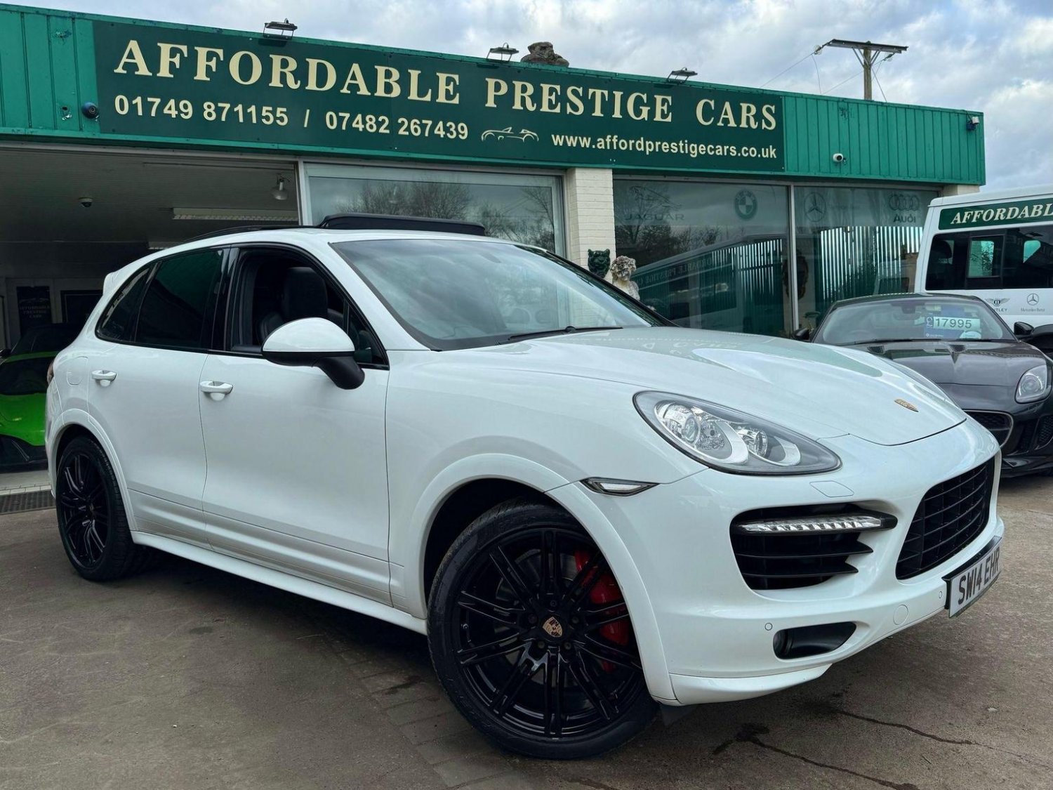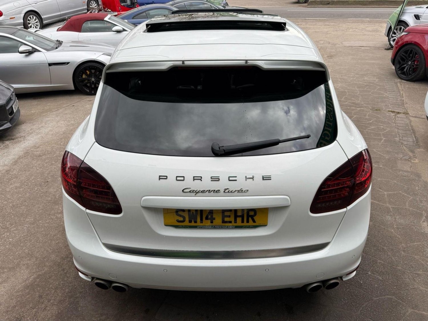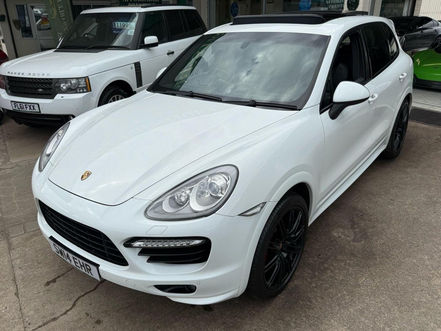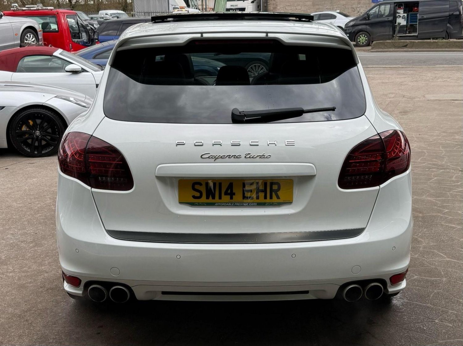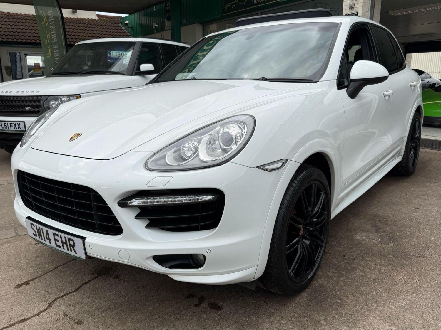 19in Alloy Wheels - Cayenne Turbo, 2 Integrated Cupholders in Front and Rear with Variable Diameter, 2x Front 12v Sockets, 3 Point Automatic Seat Belt on Centre Rear Seat with Pre-Tensioners on Front and Outer Rear Seats, 585 Watt Output Power, ABD - Automatic Brake Differential, ABS - Anti-lock Brake System, ASR - Anti Slip Regulation, Air Suspension with Self-Levelling and Height Adjustment incl Porsche Active Suspension Management, Airbag - Driver, Airbag - Passenger, Analogue Indications for Oil Temperature Oil Pressure Cooling-Water Temperature and Fuel-Level, Armrest - Folding Centre with Cupholders, Ashtray Illumination, Auto-Hold Function, Automatically Dimming Exterior and Interior Mirrors, BOSE Surround Sound System, Bottle Holder in Front and Rear Door Bins, Brake Calipers - Red, Bumper System Comprising High-Strength Cross Members and Two Deformation Elements, Central Locking with Remote Control, Cruise Control, Curtain Airbags Covering Roof Frame and All Side Windows from A to C Pillar - Left and Right, Daytime Running Lights - LED, Digital Boost-Pressure Indicator in TFT Colour Display in Instrument Cluster for Cayenne Turbo, Dimmable Inside Door Handle Illumination, Door Entry Guards in Stainless Steel with Model Designation in Front, Door Handles Painted in Exterior Colour, Door Mirrors - Electrically Adjustable and Heated, Door Storage Bins, Double Driver and Passenger Sun Visors, Electric Parking Brake, Electric Windows - Front Lift with One Touch Operation and Electrically Operated Rear Side Windows, Electronic Immobiliser - Transponder System, Emphasis Rails Silver-Coloured, Exterior Mirrors with Power Folding Facility - via Remote Key - Aspherical on Drivers Side, Extra Distinctive Power Dome on Engine Lid, Fins of the Side Air Intakes Painted in Black, Folding Front Centre Armrest - with Fore-Aft Adjustment, Four Doors with Side-Impact Protection Beams, Front Apron with Integrated Air Inlets, Front Wiper System with 2 Wiper Speeds - Intermittent Wipe Rain Sensor and Heated Washer Nozzles, Front-Rear Foot Well Illuminiation, Gear Indicator for Tiptronic S - Service Interval Indicator - Ambient Temperature Display, Glove Compartment Cooled Via AC System, Glove Compartment Illumination, Headlight Assistant, High Resolution 7in WVGA Wide Video Graphics Array TFT Colour Display, High-level Third Brake Light - LED Integrated into Roof Spoiler, ISOFIX Anchors for Child Seat on Left and Right Rear Seat, Ignition Switch and Centre Console Storage Illumination, Instrument Cluster with High-resolution 4.8in TFT Colour Display, Instruments with Black Dial Faces and Turbo Logo, Integrated Fog Lights in Lower Front Moulding, Integrated Multi-Antenna System in Rear Spoiler and Screen - Antenna Diversity, Integrated Side Airbags in Both Front Seats, Interior Lighting Reading Spots - Front and Rear, Interior Trim - Brushed Aluminium Finish, LED Rear Lights and Adaptive Brake Lights, MSR - Motor Slip Regulation, Manual Belt Height Adjustment for Driver and Front Passenger, Matt Silver Single-Tube Tailpipes - Right and Left, Non-Smoker Package, On-Board Computer, PASM - Porsche Active Suspension Management inc PDCC, PCM - Porsche Communication Management - Include Navigation, PORSCHE Logotype and Model Designation on Rear Lid in Chrome Look, PSM - Porsche Stability Management, PTM - Porsche Traction Management, Pad-Wear Sensors on Each Brake Pad, Park Assist - Front and Rear with Acoustic and Optic Indication of Distance, Park Assist - Rear, Particle-Pollen Filter with Activated Charcoal Canister, Pedal Caps in Stainless Steel, Pockets on Front Seat Backrest and One Inside Wall of Luggage Compartment, Porsche Hill Control - PHC, Power-Assisted Steering, Preparation for Towbar System, Pull-Out Loadspace Cover in Detachable Cassette, Radio - Twin RDS Tuner and Single CD-DVD Drive, Rear Window Heating with Auto-Off Function, Rear Wiper System with Intermittent Wipe and Integrated Washer Nozzle, Rollover Detection System Enabling Early Deployment of Curtain Airbags and Seat Belt Pretensioners, Roof Lining in Alcantara, Seatbelt Reminder for Drive and Front Passenger Seat, Separate Front End Auxiliary Lights with Position Light and Turn Signals in LED, Speakers x11, Speakers x14, Split-Folding Rear Seats - 40-20-40, Steering Wheel - Electric Height and Fore-Aft Adjustment, Steering Wheel - Trimmed with Smooth Leather, Storage Bin in Centre Console with Box for Cordless Telephone Handset, Sunvisors with Lighted Make-Up Mirrors - Driver Side and Passenger Side, Tinted Glass All Round with Grey Top Tint on Windscreen, Top-Hinged Tailgate with Integrated Rear Spoiler, Two-Stage Locking Alarm System with Ultrasonic Interior Surveillance, Two-Way Adjustable Head Restraints Fixed on Central Rear Seat, Tyre Pressure Monitoring - TPM, Tyre Repair Sealant and Electric Air Compressor